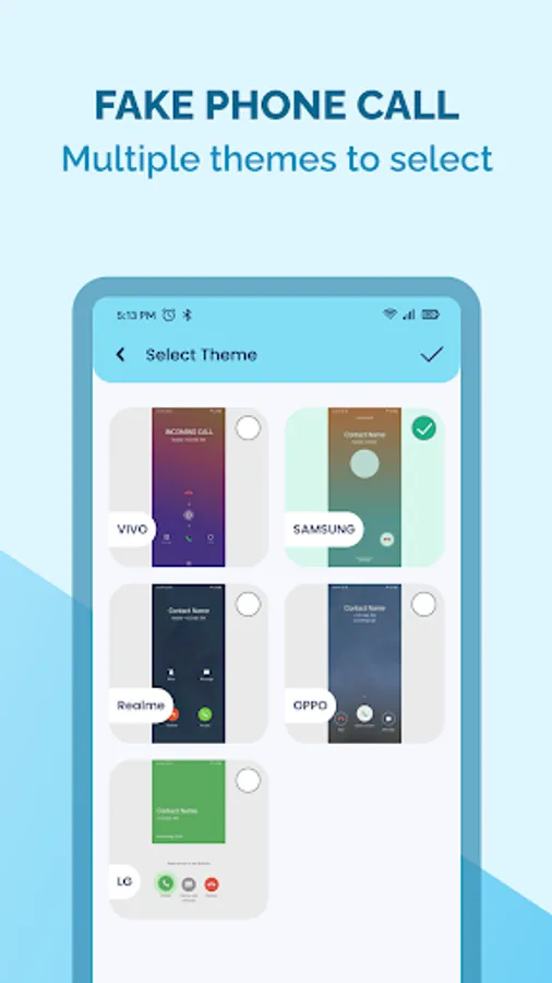 The Fake call app not only gives a lifelike call experience but also provide a user interface like regular incoming calls. No one will suspect a thing when you discreetly trigger a fake call with a simple tap on the screen.