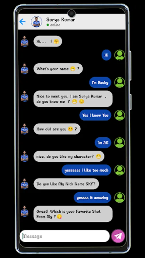 Fake videocall, chat call with Surya Kumar Yadav app to helps to fun and fake chat with SKY
