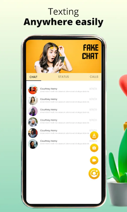 Fake conversation maker app is for prank purpose to create custom profiles for chat. Send and receive fake conversation and media on the chat with total control feature. Create status update to put fake status for the prank. Chat with support of special characters and emoji in conversation. Make Fake Call for fun with friends and family with whatsfake chat creator app.