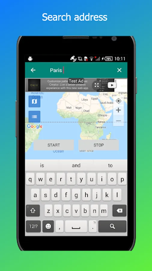 3. Open the app, click on the map to select the location > Click START