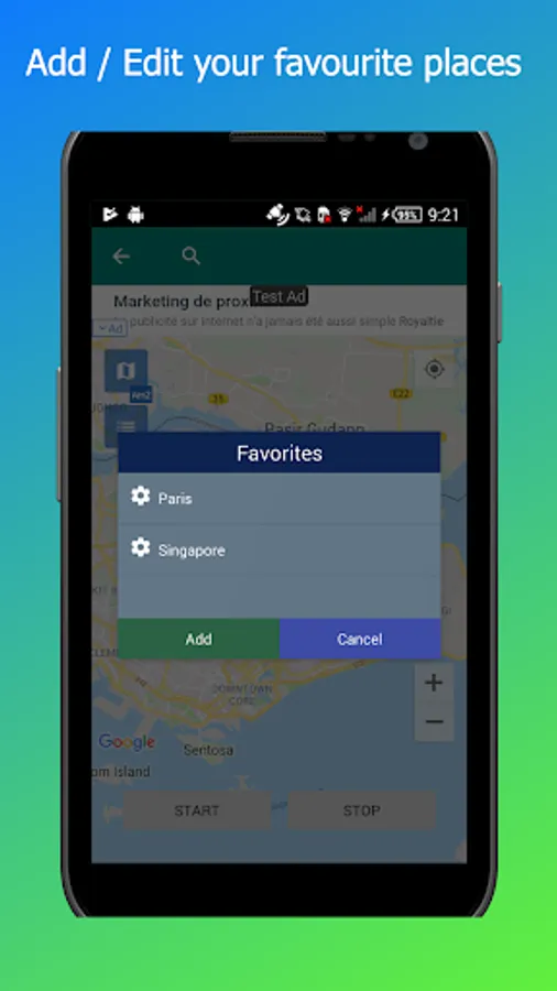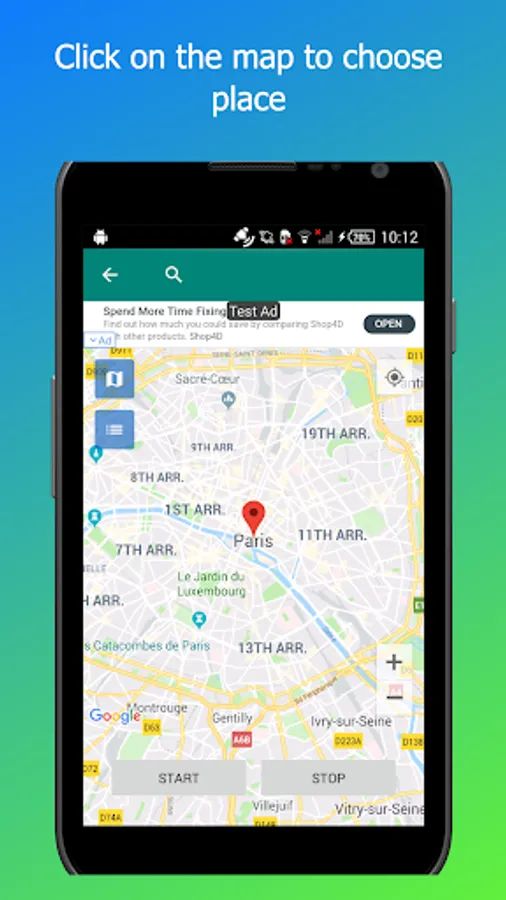 4. To stop the fake gps location simply click on the STOP button.