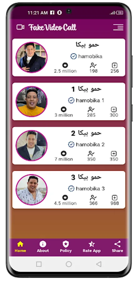 Through the application of Hamo Beka calling you a video, you can joke with your companions, especially the lovers of Hamo Beka, that you are in contact and close to Hamo Beka, that you have his phone number, and that he will call you a video after several minutes, this fake call from the application will appear real and Hamo Beka was actually calling you video call .