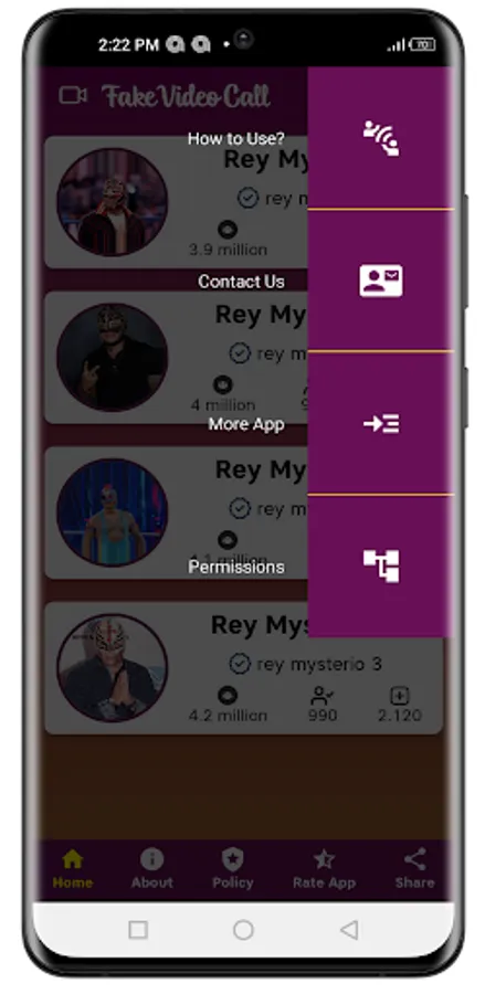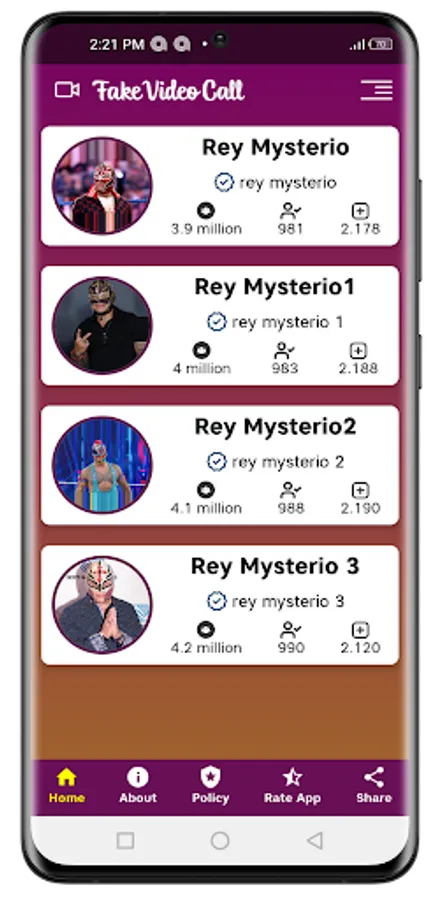 Now, through the Rey Mysterio fake video call prank app You can joke with your friends and make a fake call prank with Rey Mysterio.