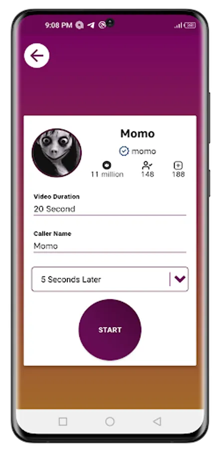After you download the application, choose an image from the four images on the main page of the creepy momo fake video call prank application ,And then select the time when you want to receive the fake call, for example, directly or after several minutes and press the start button, you will automatically exit from the application and the call comes after the time you chose, which makes the video call with creepy momo look real.