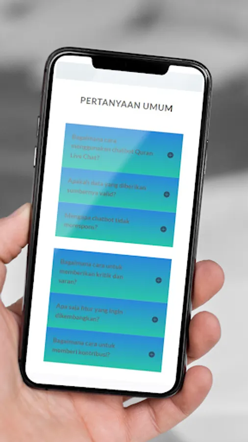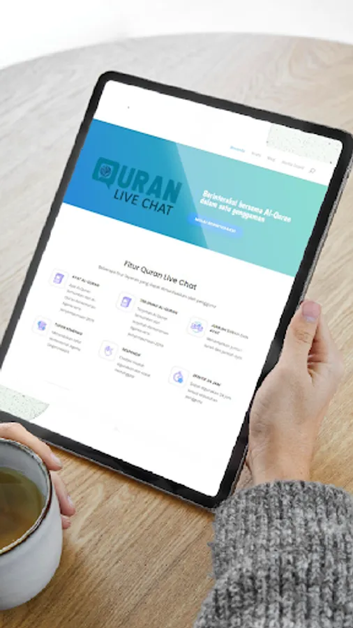 Quran Live Chat is the product of a postgraduate undergraduate (S1) research result from a student majoring in Al-Quran and Tafsir Science, Ushuluddin Faculty, UIN Sunan Gunung Djati Bandung, named Fakhri Putra Tanoto. In completing this research, of course, it cannot be separated from the guidance of the supervisor, namely H. Dr. Ahmad Izzan, M.Ag and Dr. Izzah Faizah Siti Rusydati Khaerani, M.Ag who always provides direction, suggestions and criticism as well as support from the Dean of the Faculty of Usuluddin Dr. Wahyudin Darmalaksana, M.Ag and the Head of the Department of Ecep Ismail, M.Ag until the research was finally completed with the title Prototype of the Qur'an and the Translation of the Ministry of Religion for the Completion of 2019 Edition in Quran Live Chat on WhatsApp and Telegram Applications. In addition to completing research in the form of scientific articles, this research also creates the following products: