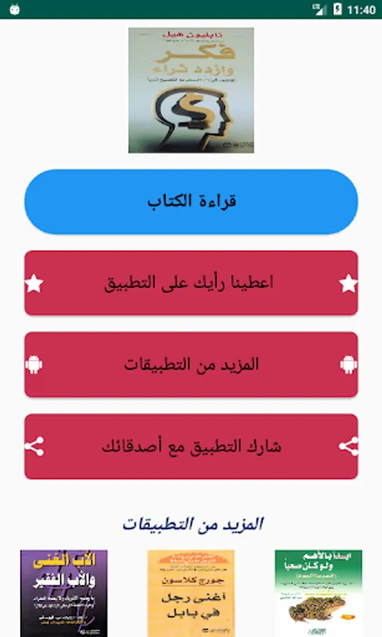 This book is considered the most influential in the field of directing towards personal accomplishments and financial independence, and finally towards spiritual art that is not measured by money. This book includes equations that lead to success for people who strongly desire to raise money and obtain the spiritual satisfaction and riches achieved by accomplishments and gains. And if you seek advice in this field, then this book teaches you what to do? And how do you do it? In it you will find the magic of self-direction, organized planning, detailed plans to market your personal services, and many tips drawn from the experiences of great men who have proven their value.