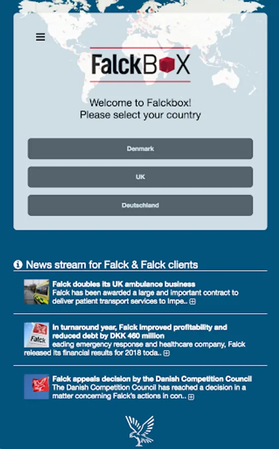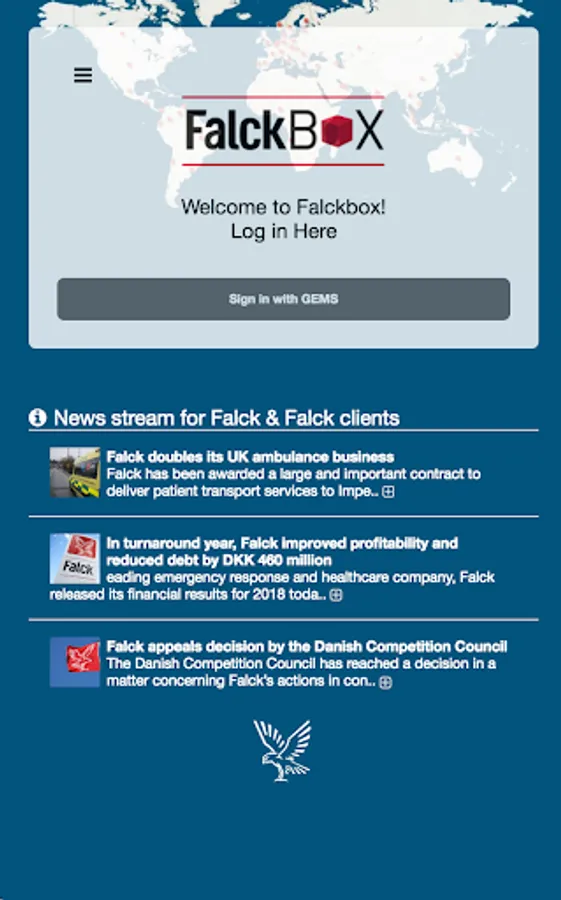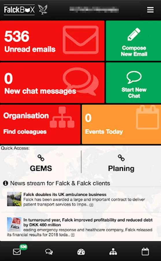 Falckbox is an internal communication tool created for Falck only. Falckbox facilitates various tools to enhance communication between employees across the organization, such as a chat function and a mailbox solution customized to each employee's connection to a group/department and place of work.