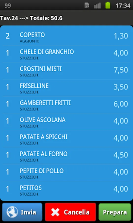 Added code to the application will download immediately the restaurant menu, giving you the ability to compose the commands.