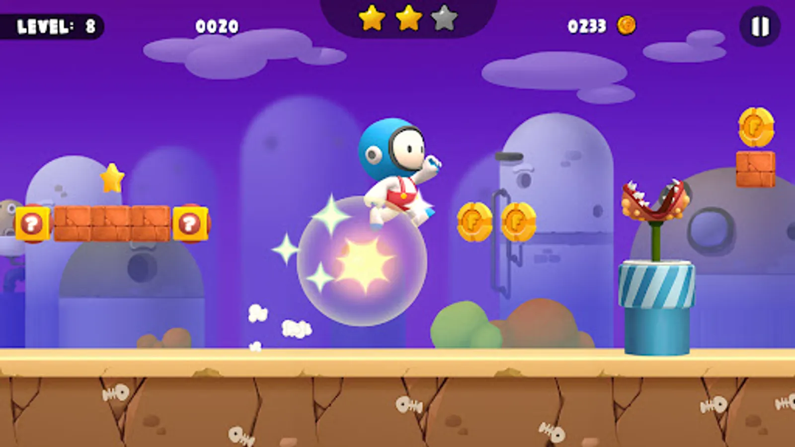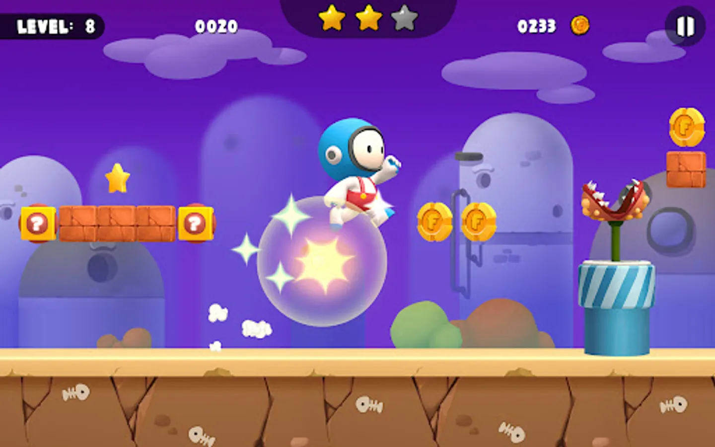 Unlike super mario party or super bino go or mario zalda, fun guy is a cute leprechaun alien try to run fast and defeat all challenges on the way to save the princess. Fun Guy Run Adventure Game is the updated version with 3D perspective, good game physics, graphics, and with even more challenges to fulfill your heroic desire.