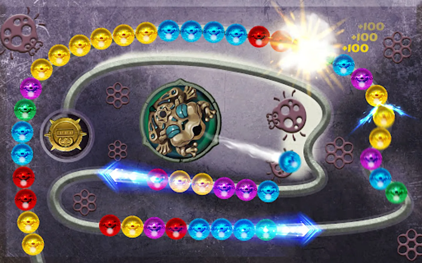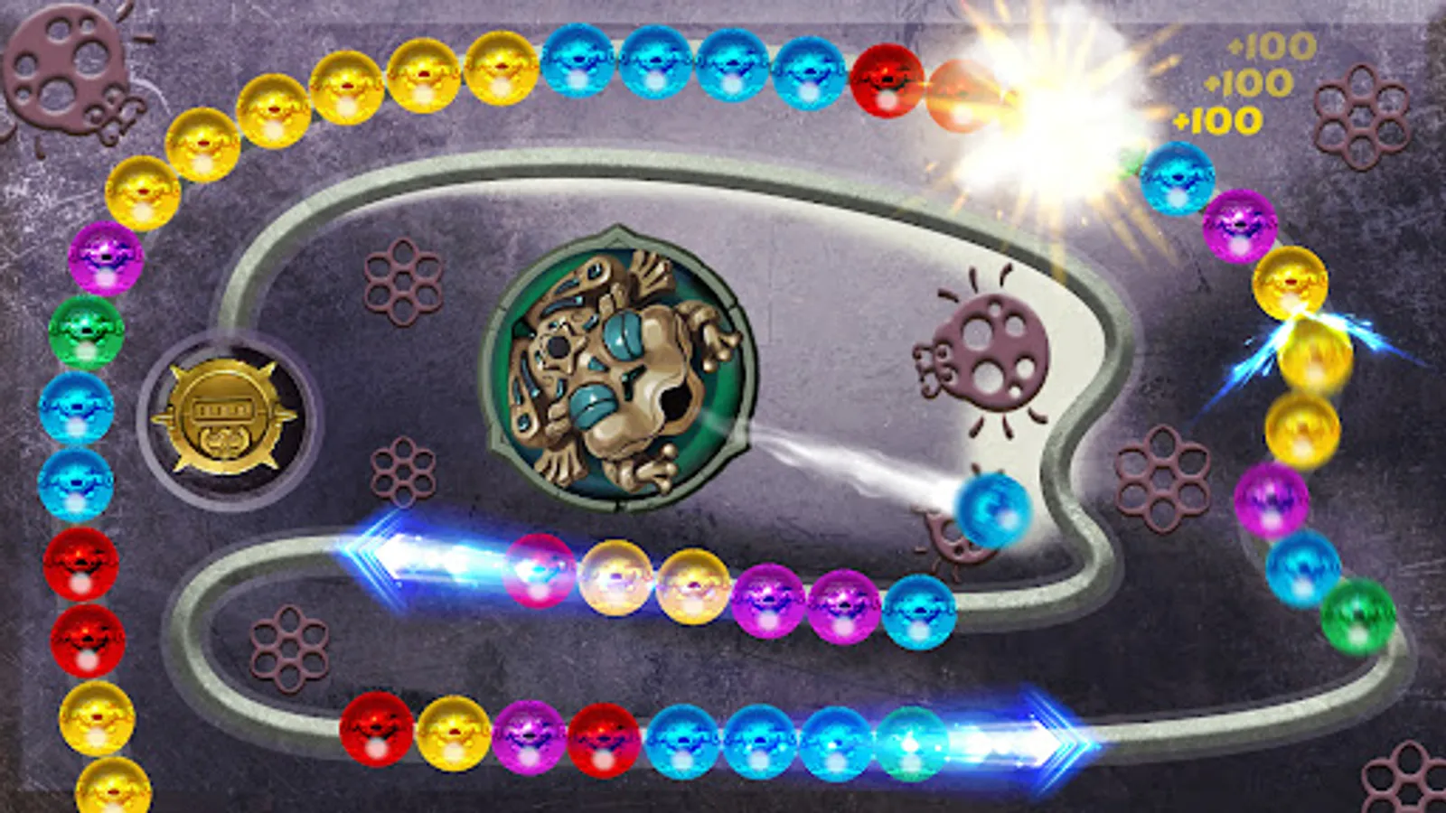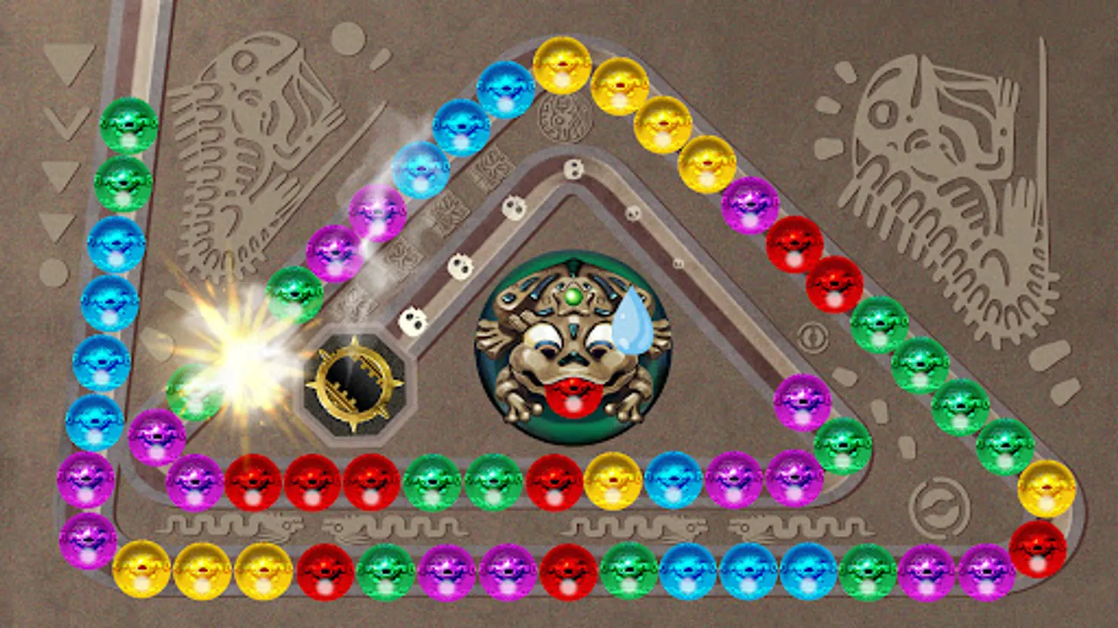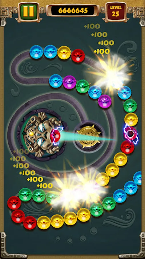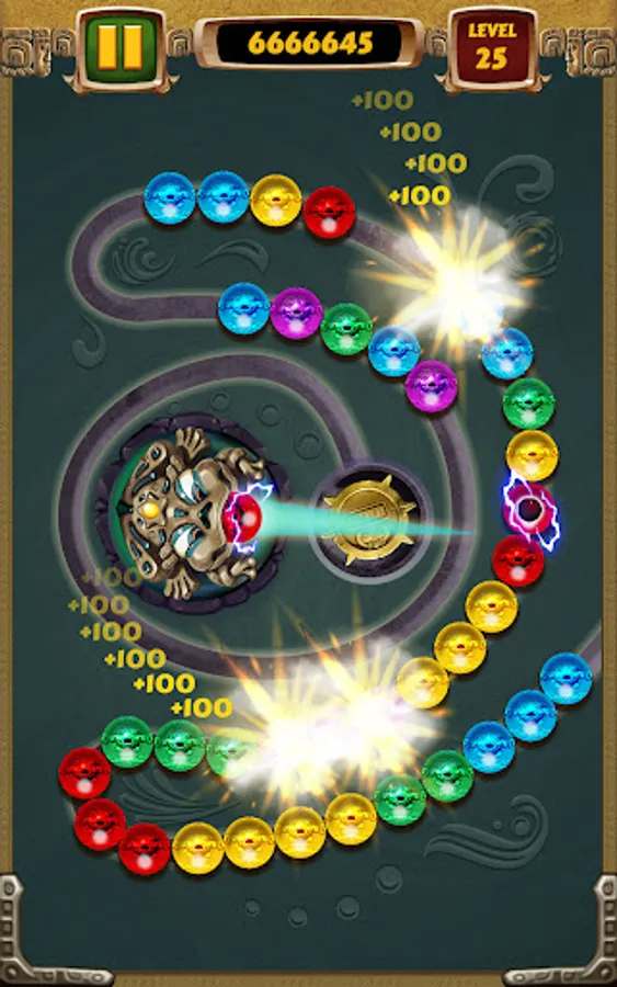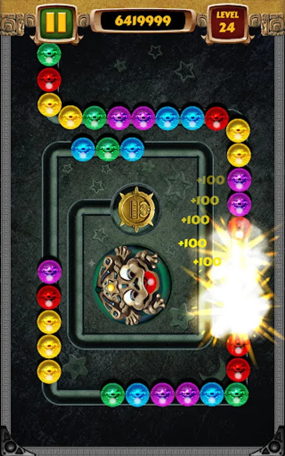 - Match 3 marbles or more of the same colors for shooting them blast!