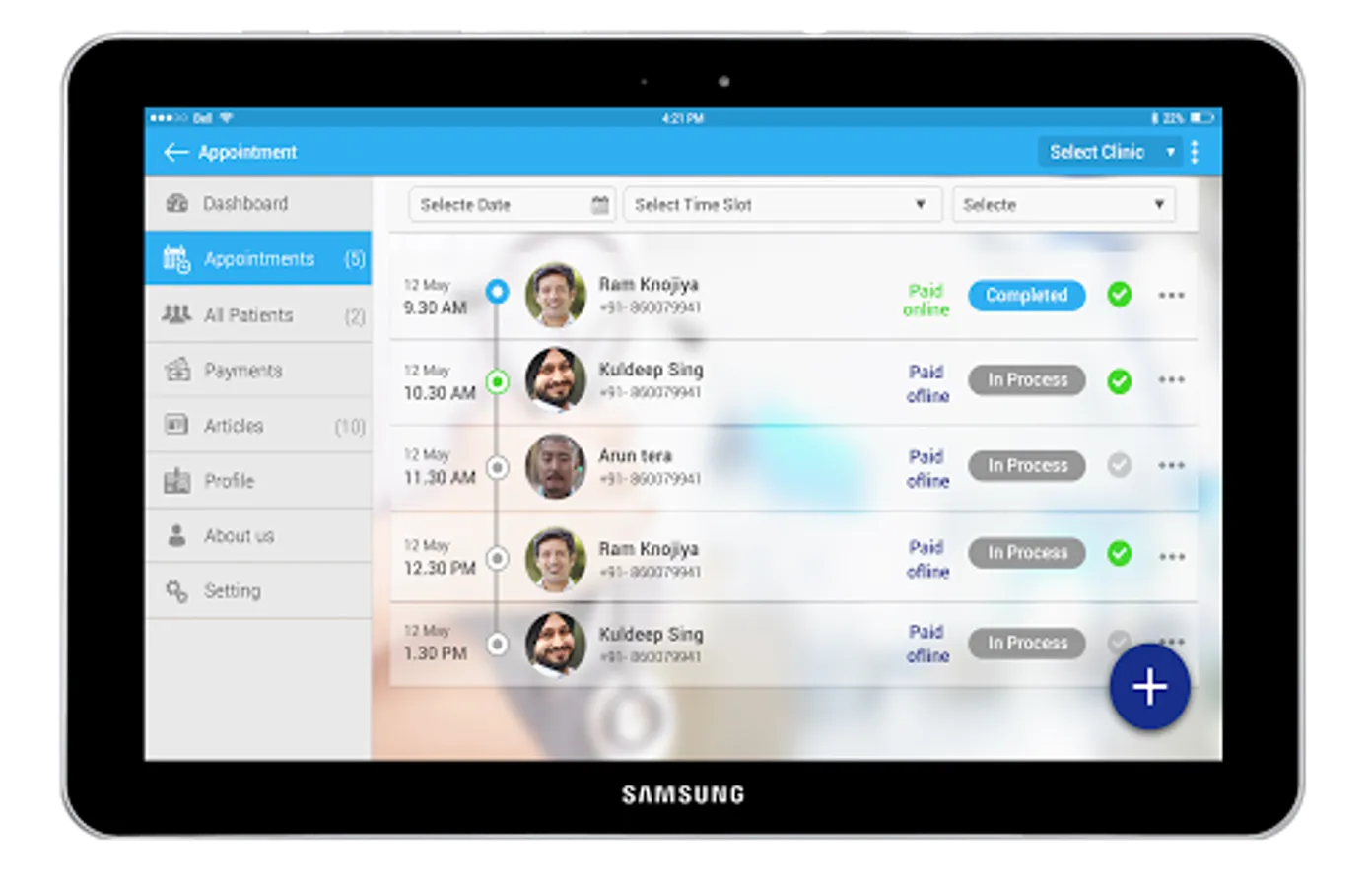 5) Doctor can manage appointments, appointment time slots, fee structure, payments, patient appointment status, video appointments etc.