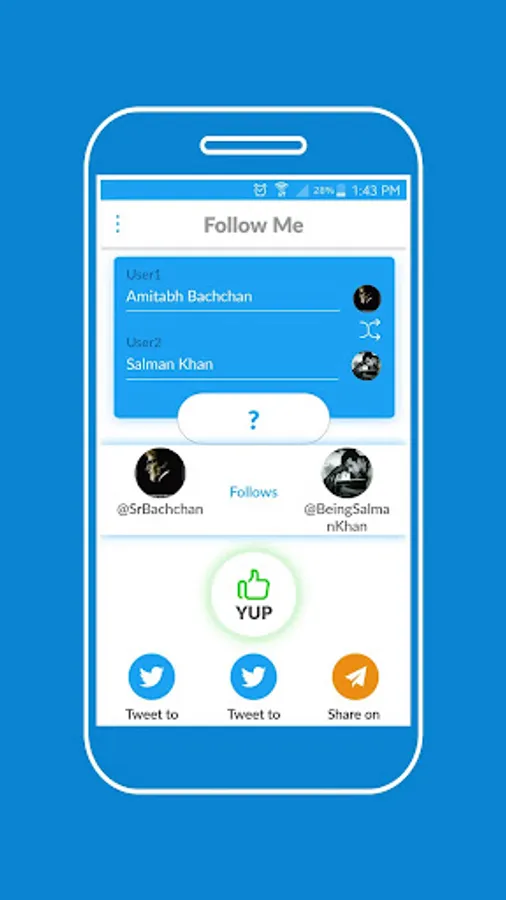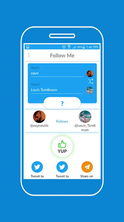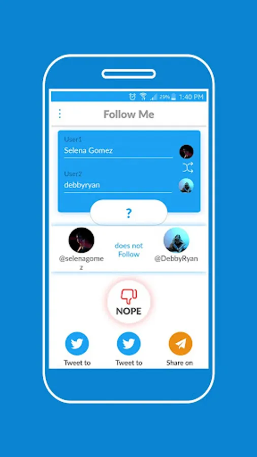 Follow Me is a simple app that will help you find out whether someone follows the other person on Twitter or not.