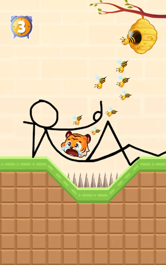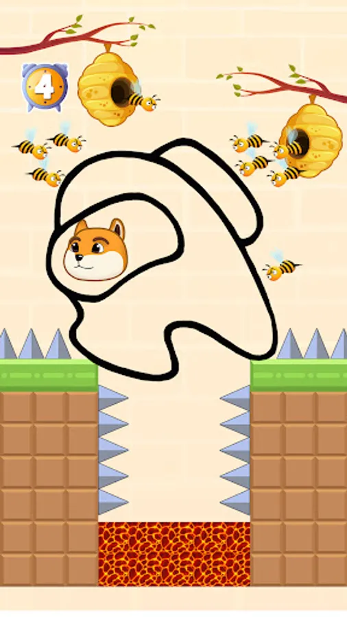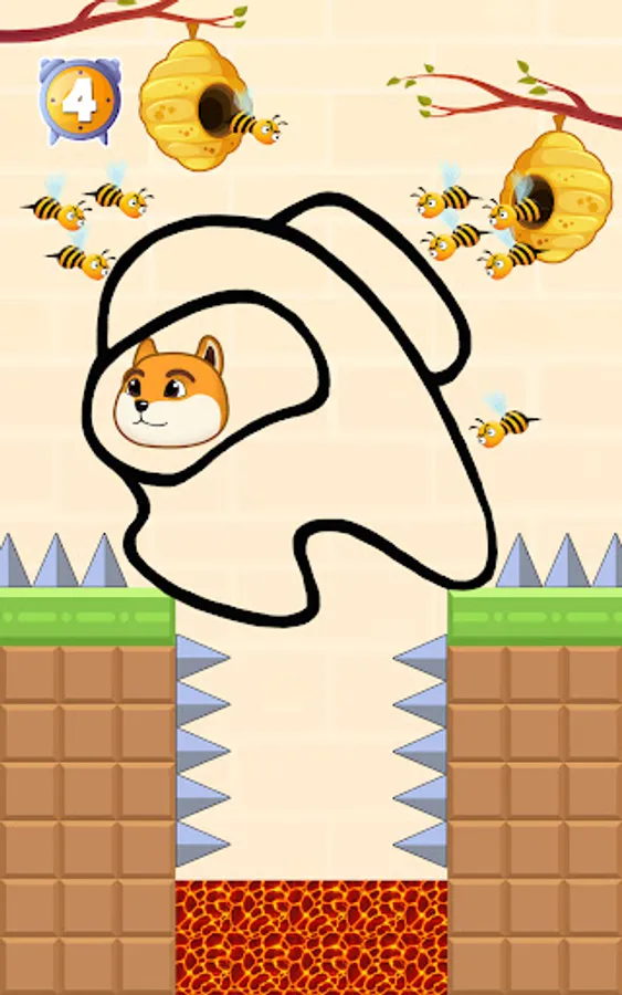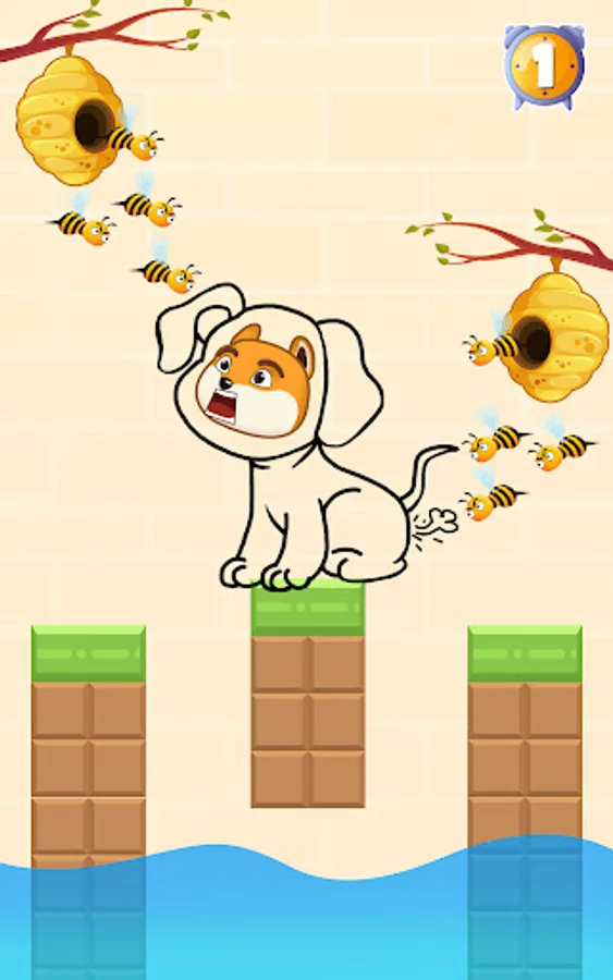 Watch out! The cute dog is in danger. The evil bees have come out to sting him. The only way you can save the dog is to draw a line to stop those bees.