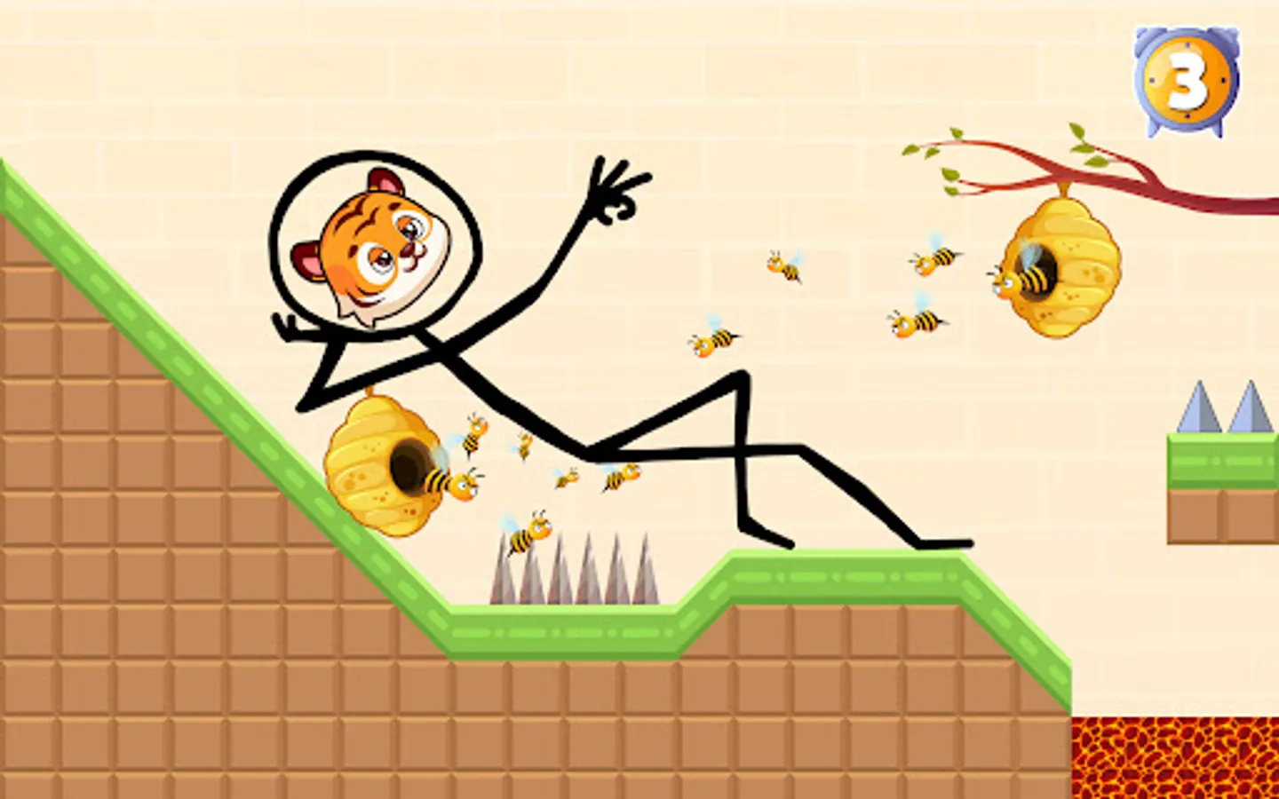 Bees aren't the only thing that can hurt him. The dog must also overcome lava, water, spikes and bombs to get to safety. Help him please!