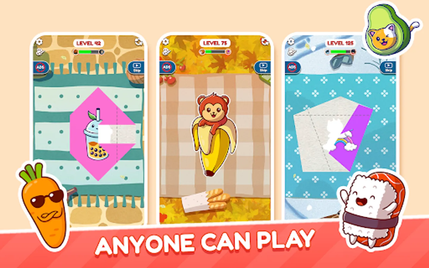 Simple and interesting gameplay, where you only need to tap and Fold the paper.