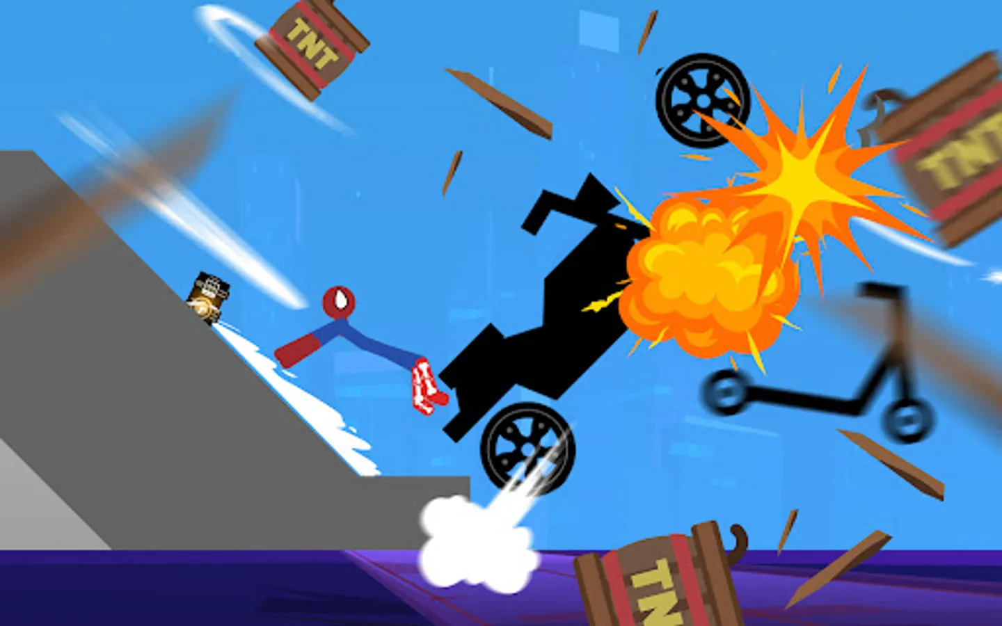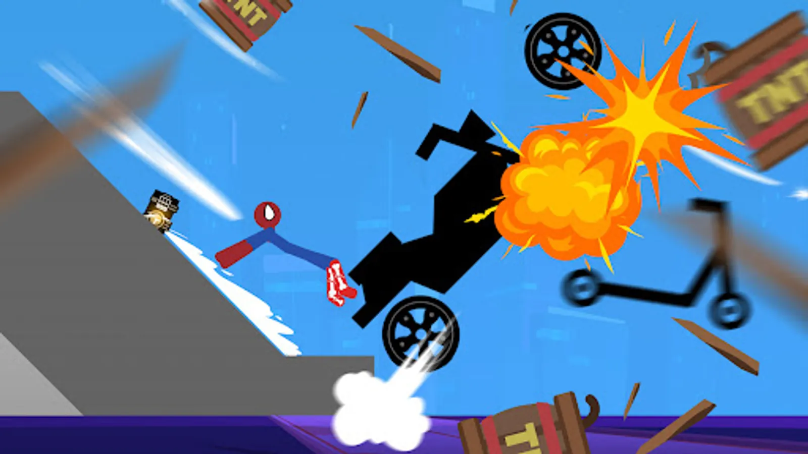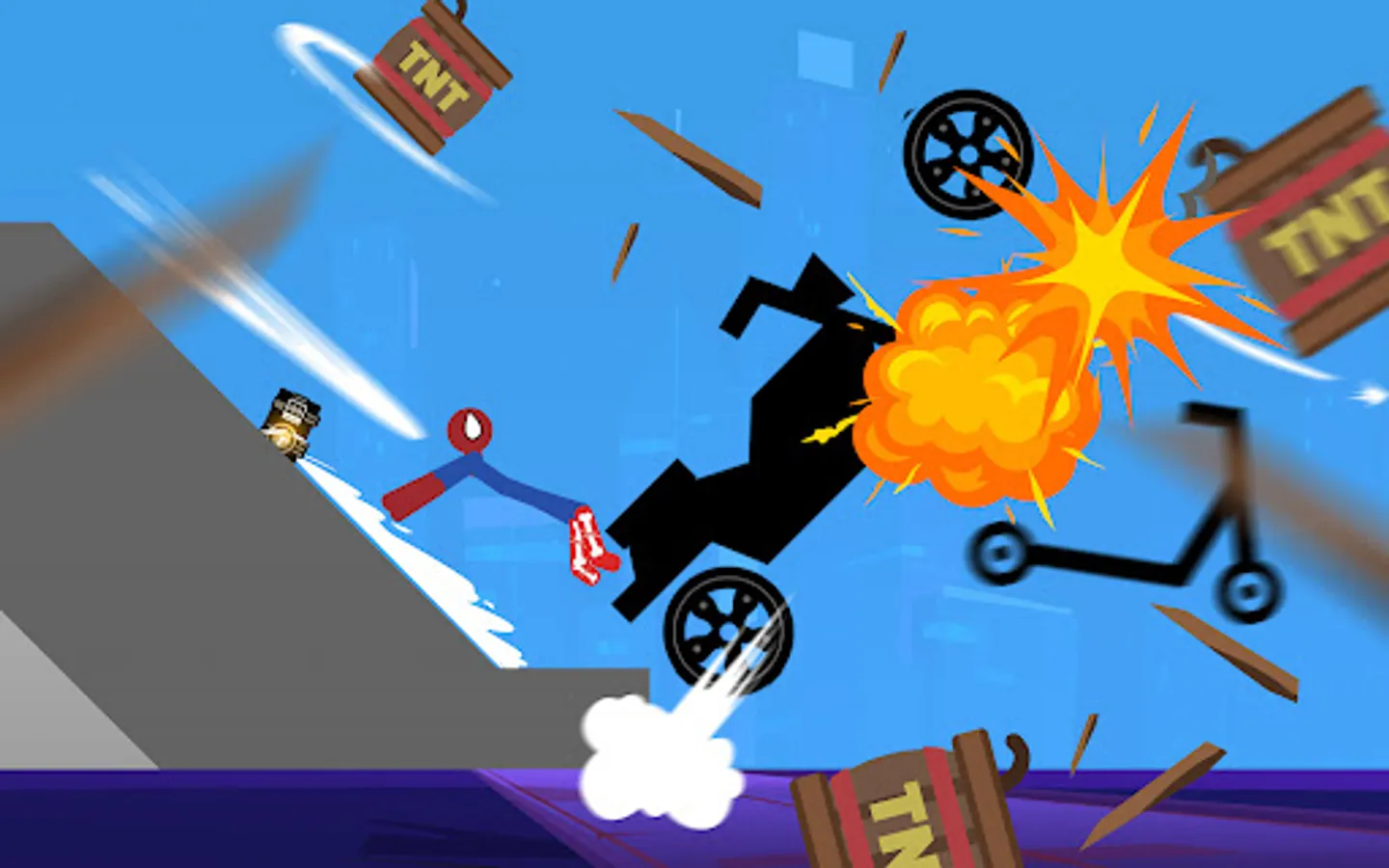 Falling Stickman Ragdoll 2D is a physics ragdoll simulation game, Perform death-defying vehicle stunts; crash into walls; break bones to pieces, bleed continuously, and destroy everything. 😬😬😬