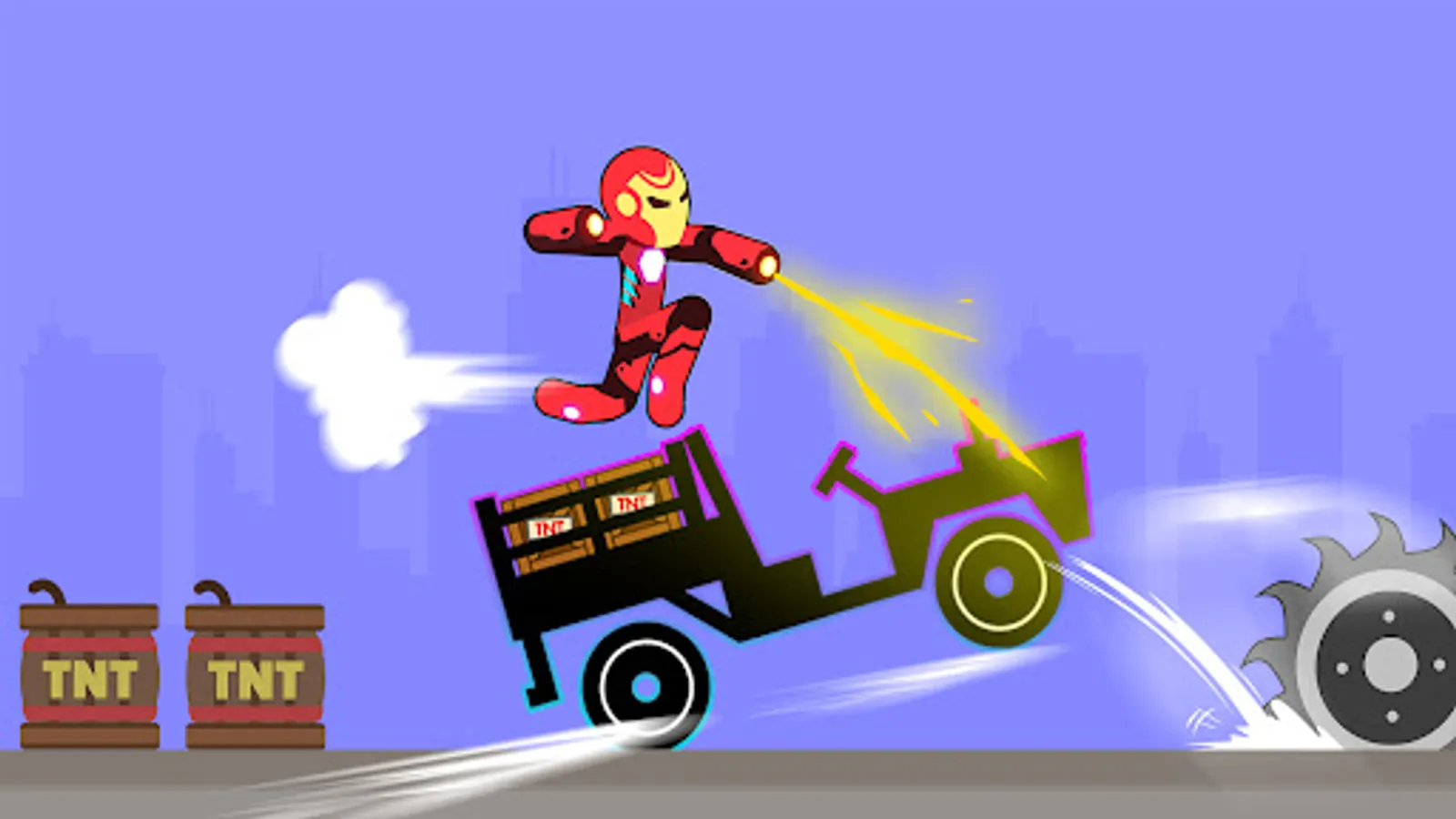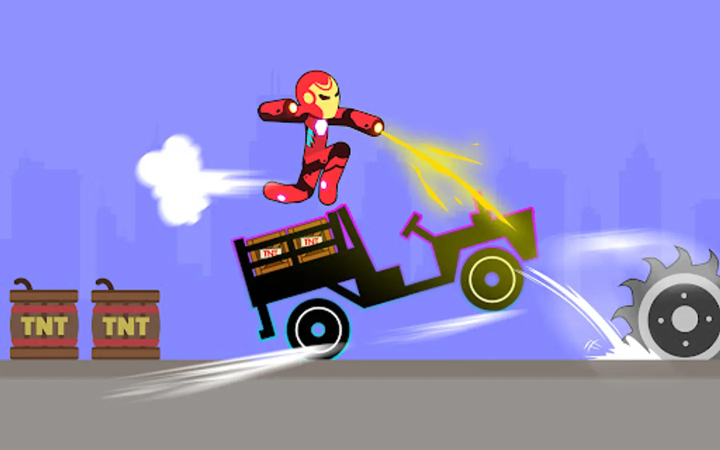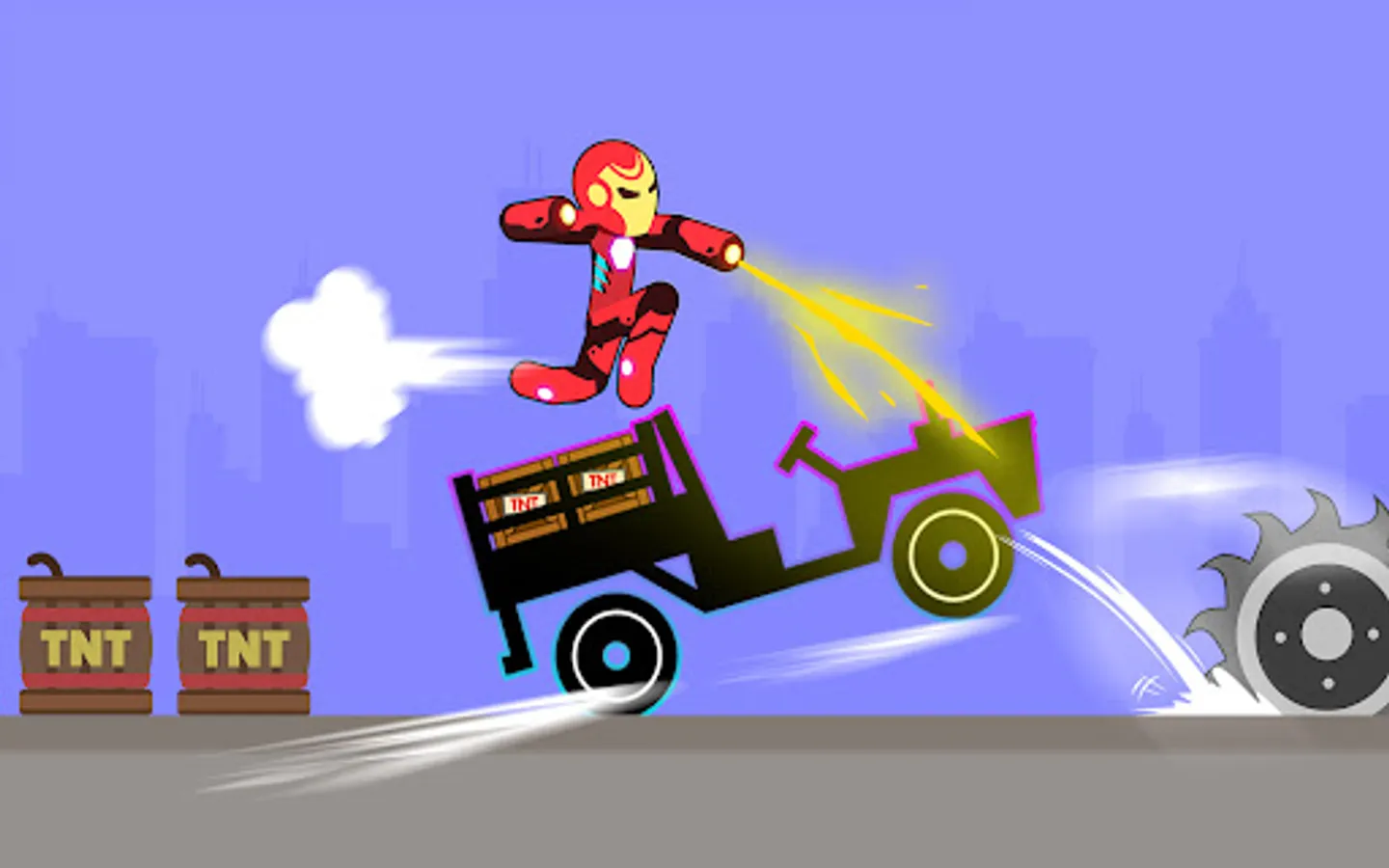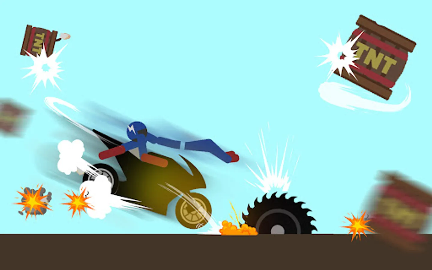 Hold and release the dismount button to get the momentum to push the stickman from the highest ladder to the bottom, hitting a lot of obstacles, and creating as much damage as possible