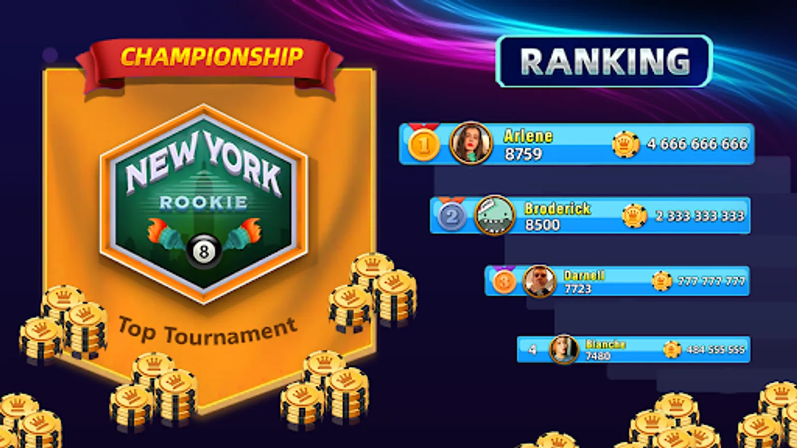 World tournament: Play like a pro and win your trophies against other pool players!