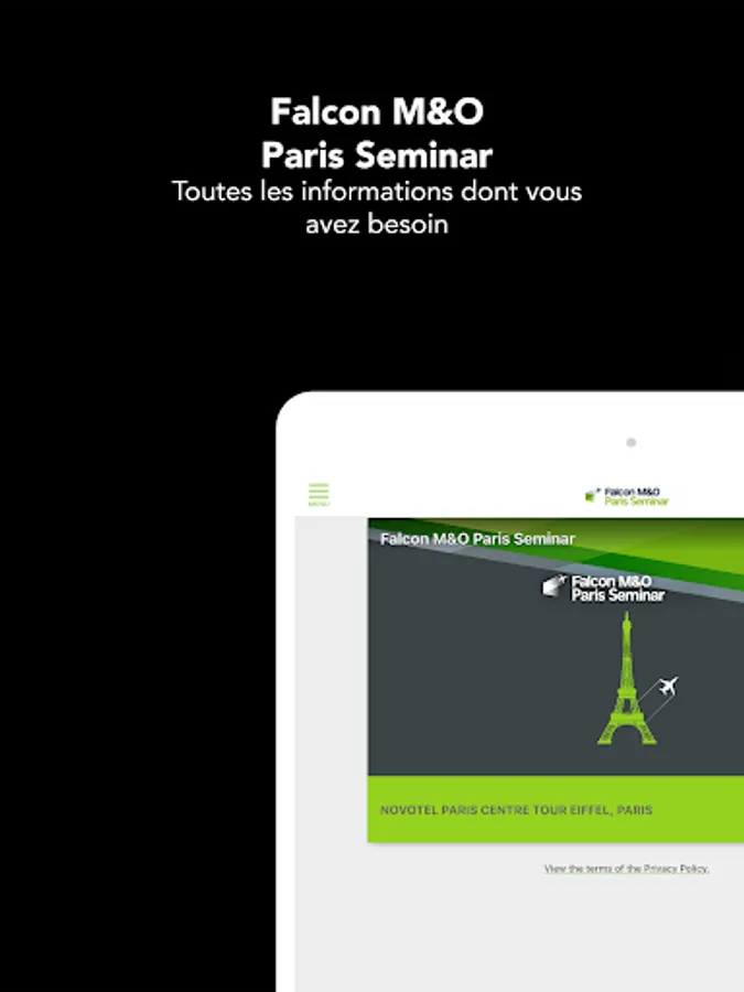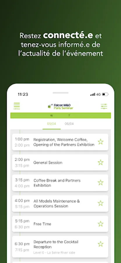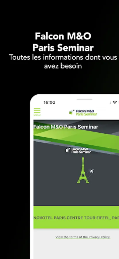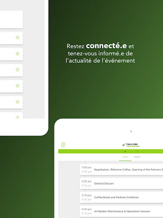 The official mobile app of the 2023 Falcon M&O Paris Seminar provides you with all event content in a mobile format: practical information, detailed schedules, speaker bios, and live quizzes and Q&As. The app enables you to connect with other attendees and make the most of your participation. Other event services such as messaging are also available. Stay connected!