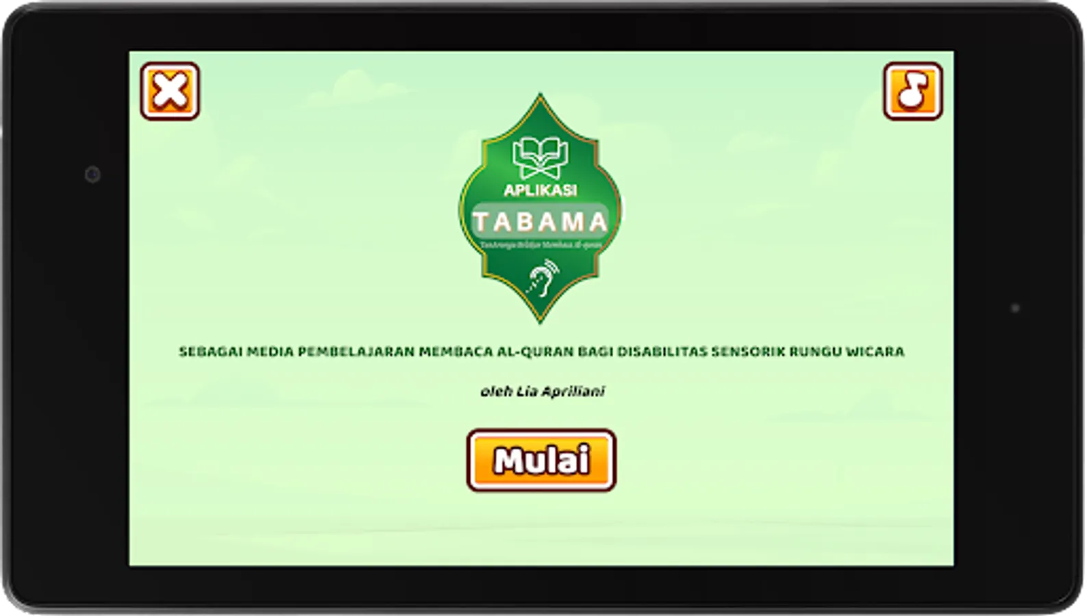 Welcome to TABAMA, an innovative application for learning to read the Koran specially designed for deaf students. TABAMA, an acronym for Deaf Learning to Read Al-Quran, presents interesting learning by combining visual, auditory and sign language stimulation, in accordance with the principles of effective learning media.