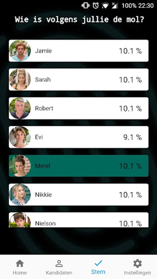 Everyone can vote for free on his mole. So there is an overview who you think is the most suspicious of all candidates.