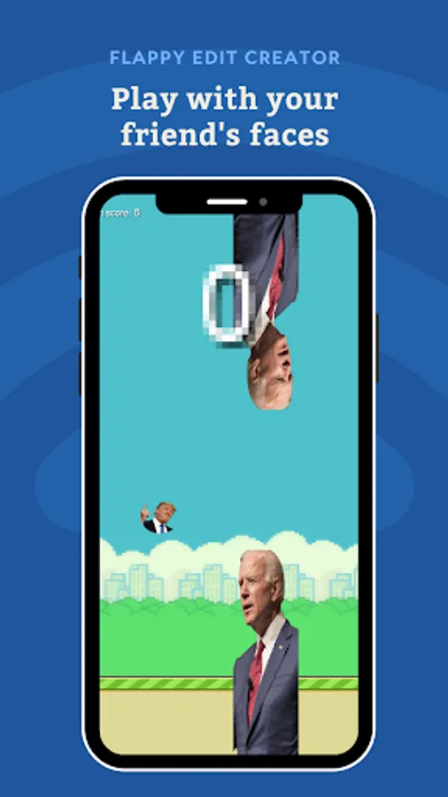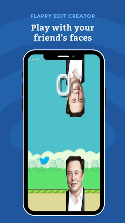 ☞ Make fun with your friends! Make fun, and get in the ring! Flappy Edit allows you to play with the faces of your friends! Select and cut yourself the image in your gallery and then click PLAY!