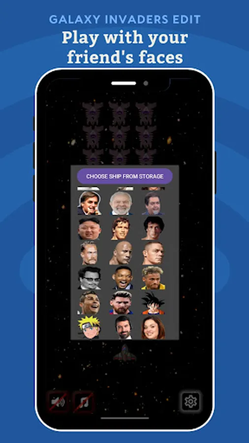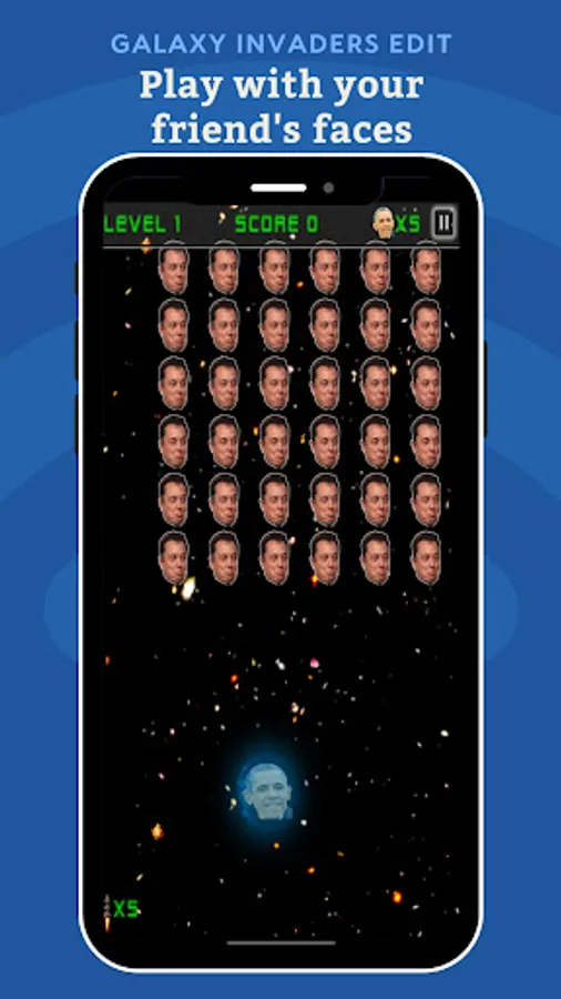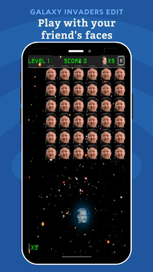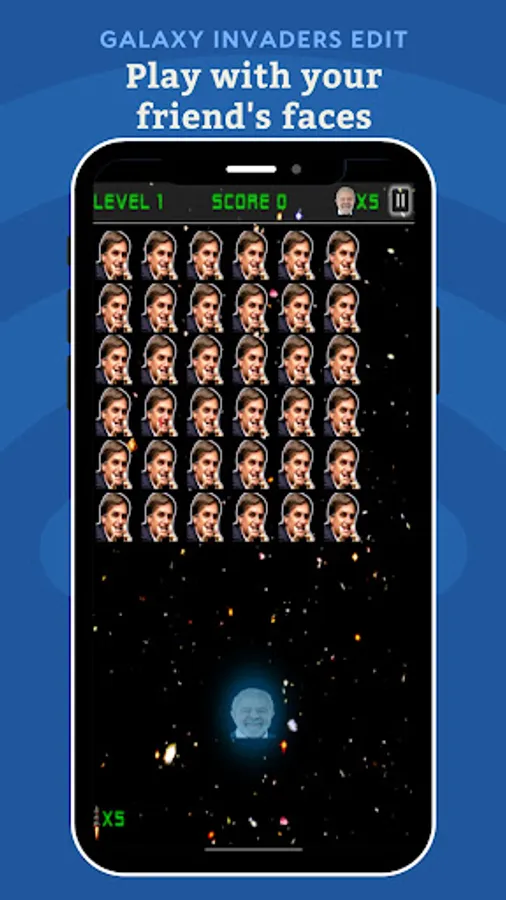 Customize your spaceship with the faces of your friends and defend Earth from invading aliens in this personalized twist on the classic Space Invaders game.