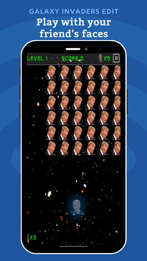Galaxy Invaders Edit is an exhilarating arcade-style game that takes inspiration from the classic Space Invaders. In this modern iteration, players are immersed in an intergalactic battle against relentless alien invaders. What sets Galaxy Invaders Edit apart is its unique feature that allows players to customize their characters using any image of their choice, making each gameplay experience highly personalized and visually captivating. With its fast-paced gameplay, stunning graphics, and addictive mechanics, Galaxy Invaders Edit offers an unforgettable journey through the cosmos.