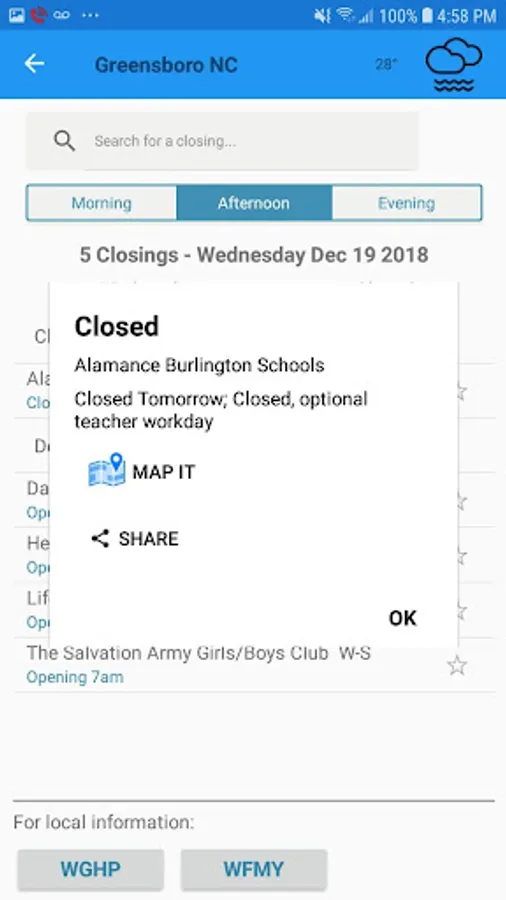 Why waste your time on other snow day closing apps that simply give a best-guess prediction when RUClosed can tell you with near 100% certainty if your place is closed. RUClosed also provides contact information, such as phone numbers and web sites for quick and easy verification of the closing details.
