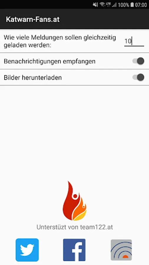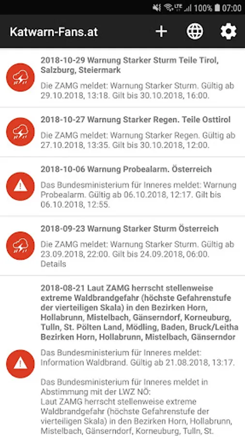 This app is a supplement to the site www.katwarn-fans.at