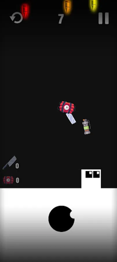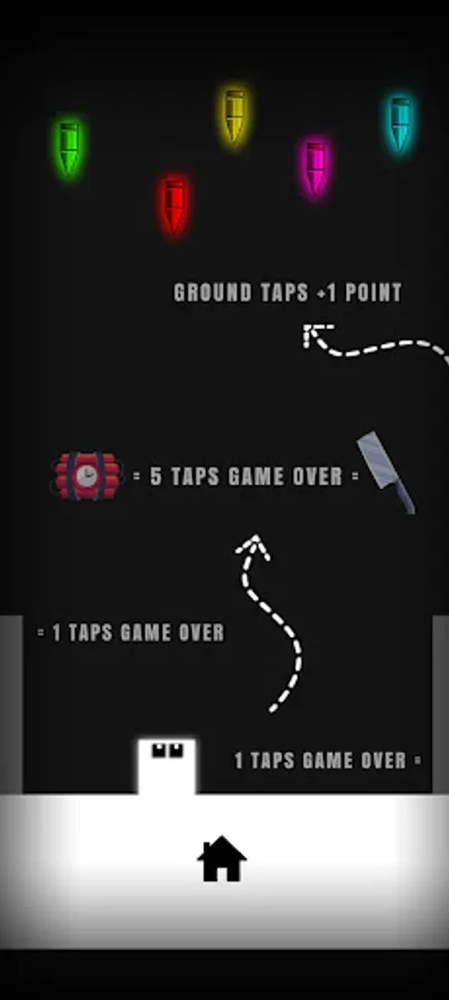 In this fast-paced game where your base is in the sky, your square character struggles to survive against bullets falling from the sky. You can earn points by avoiding bullets, but be careful because if you double-tap the sidewalls you will lose. Also, bombs and knives falling from the sky pose a danger. If you collect five bombs or knives, you lose. With its fun graphics and addictive gameplay, this game is an opportunity not to be missed! Download now and show your skill.