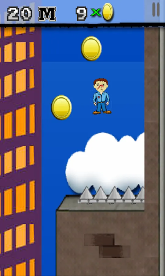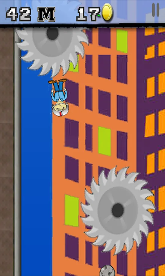 Greg need your help! Help Greg avoid the dangerous obstacles! Try to gain your highest score by trying to fall as much distance as you can.