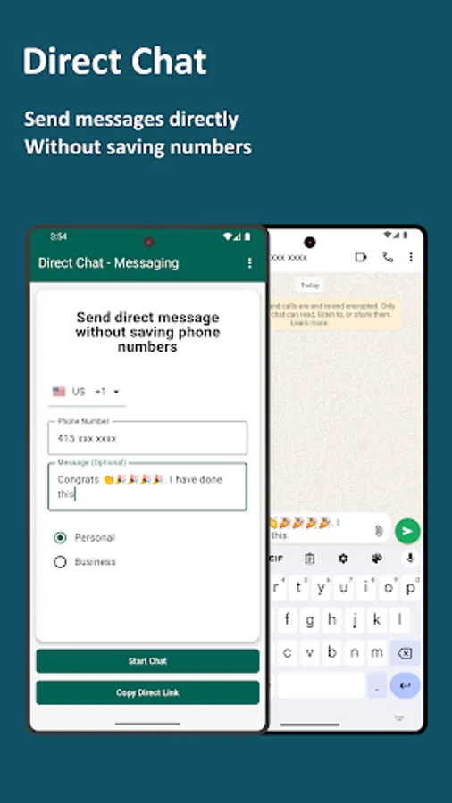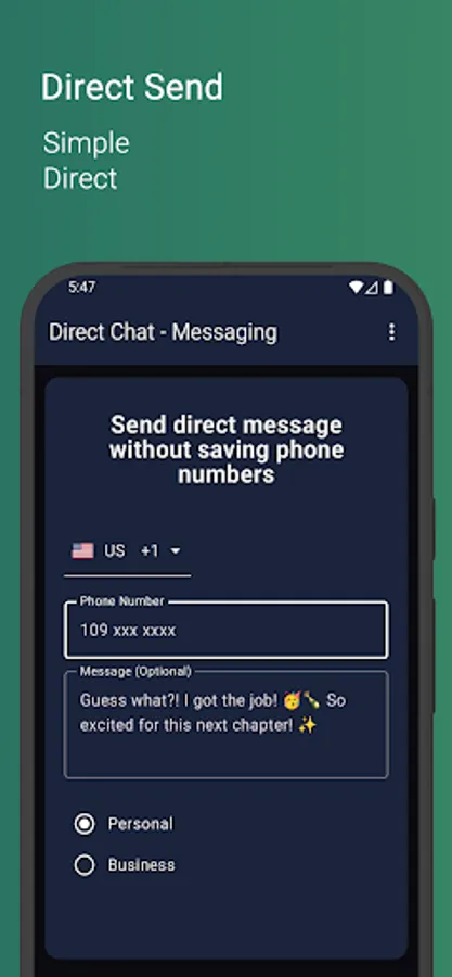 - For Personal/Business Use: Sometimes you just need to send a quick message without the hassle of saving numbers. DirectChat makes it effortless.