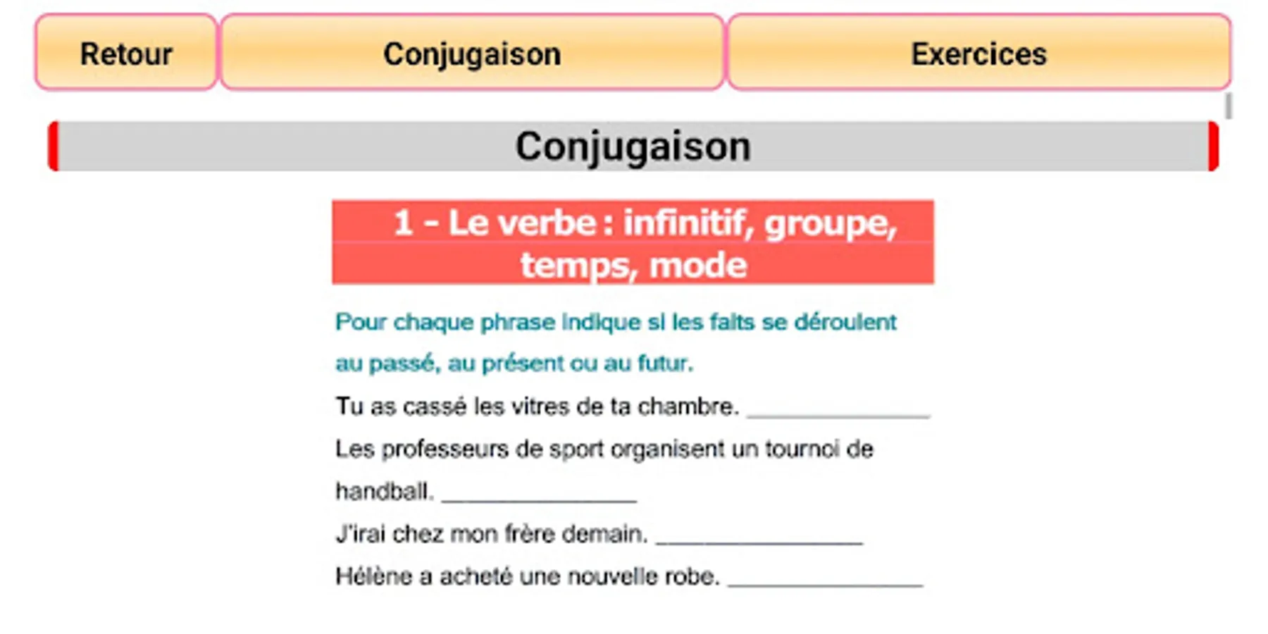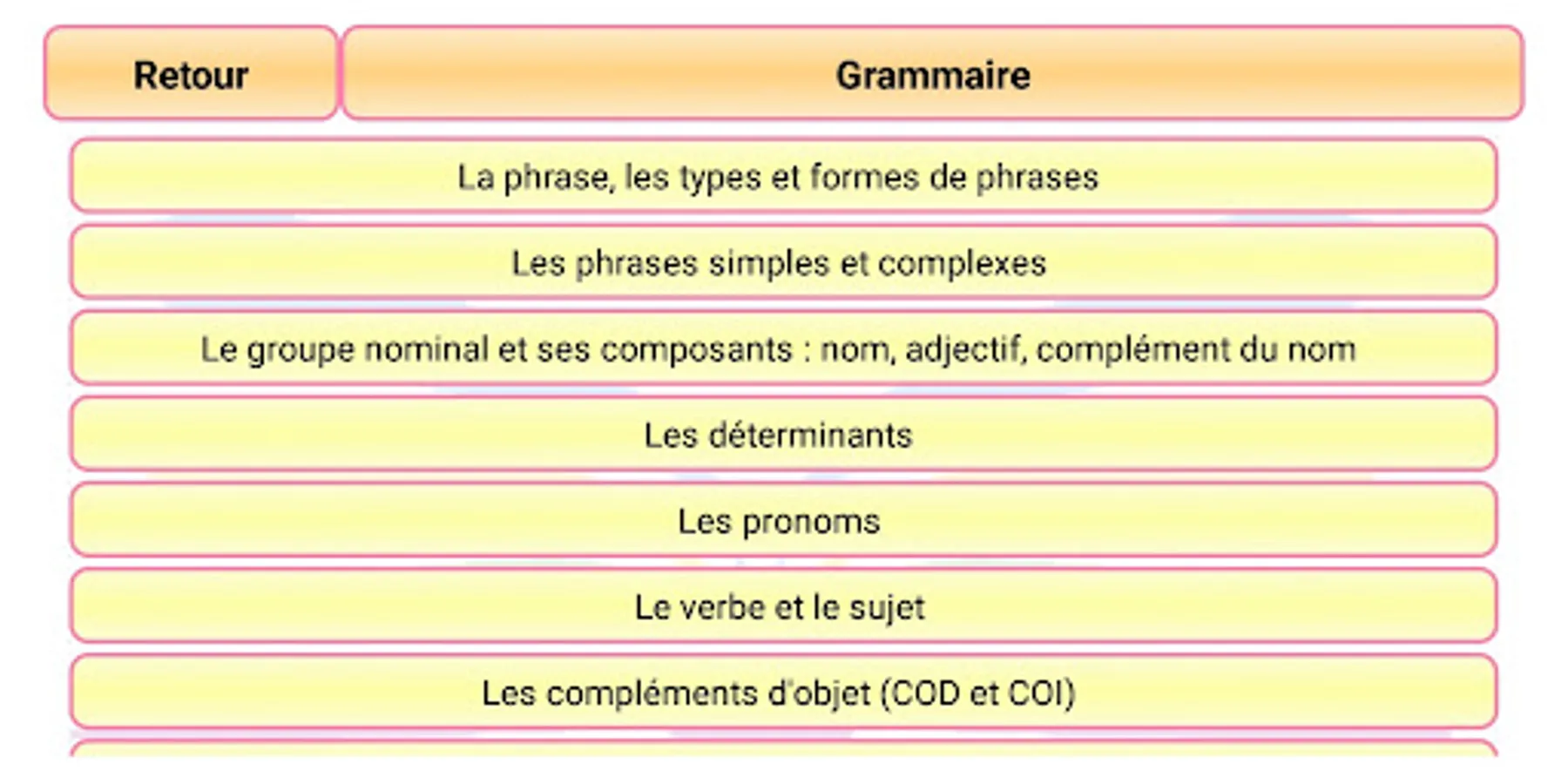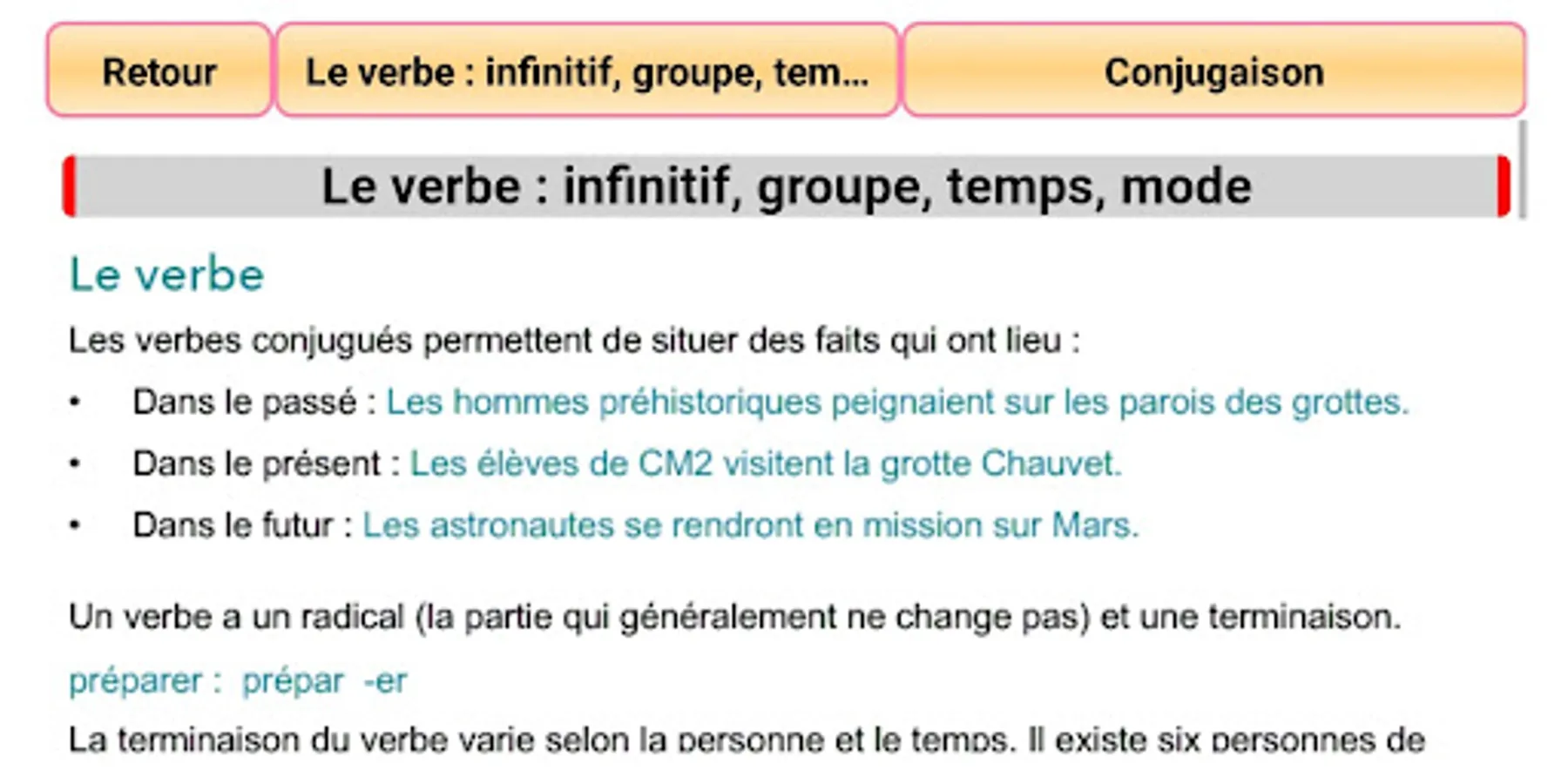 This application contains French lessons for CM2 students, summaries of all lessons and activities without Internet.