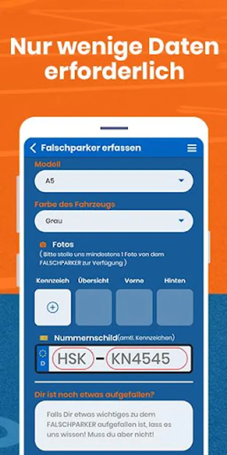 We offer the ideal solution for FALSCHPARKERn on or in front of private parking spaces. We provide for the reimbursement of damages and legal costs by a proper processing of the reported facts to experienced traffic law experts - we mediate exclusively to professional law firms, the so-called Halterhaftung in possession of any kind (such as "prohibited power") consistently against FALSCHPARKER Action. In brazen parking thieves and repeat offenders get our private traffic tickets and warning signs and in the final analysis even legal warnings used. By using our app you incur no costs - on the contrary: because of the exclusive assertion of your claims by a lawyer you even receive up to 40.00 EUR for each reported parking offense. In addition, we offer many more useful features, gadgets and information for the currently most efficient defense against FALSCHPARKERn in the market for private parking surveillance.