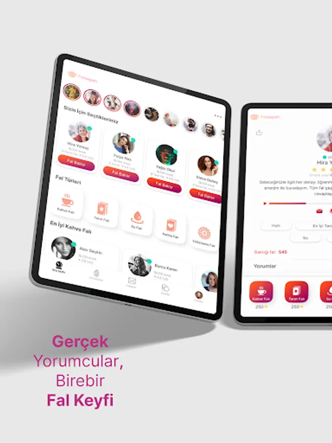 Our site, which has been serving since 2012, is one of the oldest and well-established applications that provide fortune telling on the internet. Hundreds of different commentators have provided hundreds of thousands of fortune-telling experiences to their hundreds of thousands of followers over the years and continue to do so. With its mobile application, Fal Sepeti is with you to reach more audiences, touch more lives and emotions and make a difference!