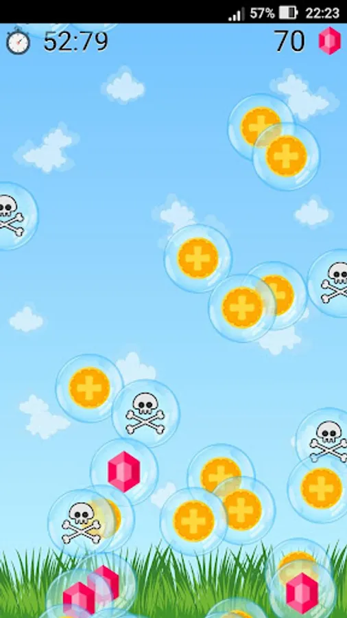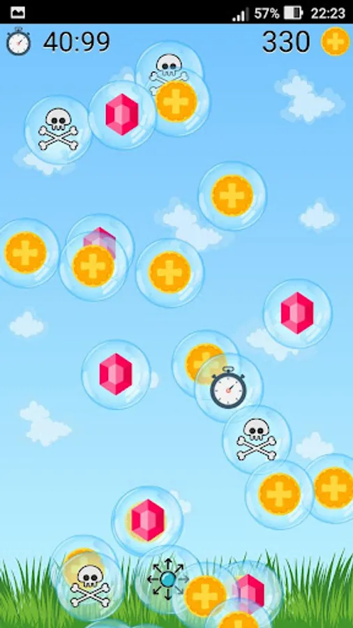 This is a very simply game to use as amusement. Enjoy youself to burst as many bubbles as possible before time expire. Each bubble have different behavior based to the symbol inside. Some give you points, some other give you additional time, other immediately kill the game and so on. You just have to try how funny is burst the bubbles!