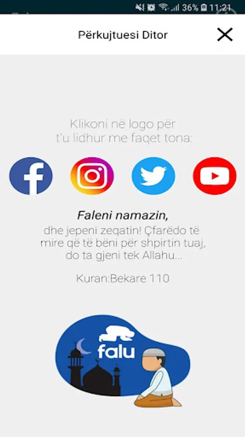 Ky aplikacion shërben për mësimin e faljes së pesë kohëve të Namazit, aplikacioni punon edhe nëse nuk jeni të kyqur në internet.