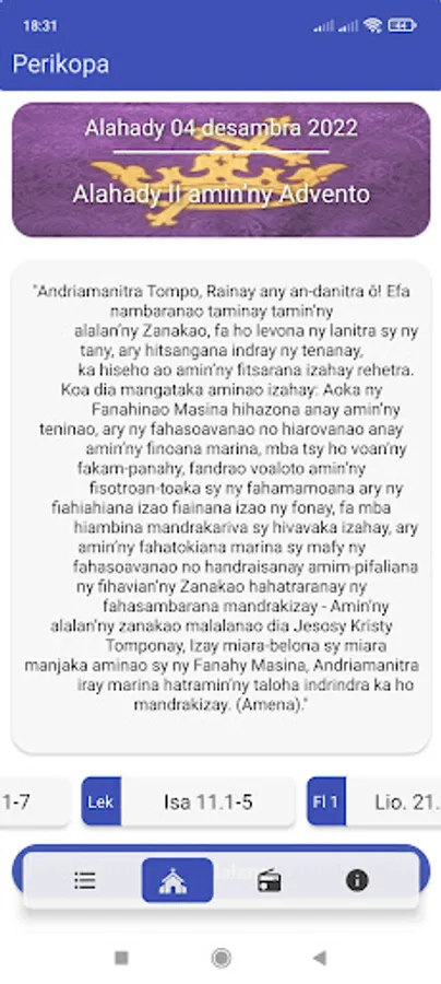 Perikopa ho an'ny Fiangonana Loterana Malagasy. Natao hanampiana antsika rehetra amin'ny fanomanana sy fahafantarana ny taom-piangonana.
