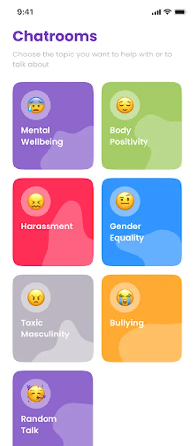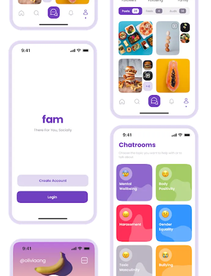 fam is a social media platform that lets people chat with like-minded people in chatrooms, dedicated to topics that people go through daily but don’t talk about, in the fear of being judged or being misunderstood, without letting the other person know your actual identity. (This is where your hidden identity will be used🤫)