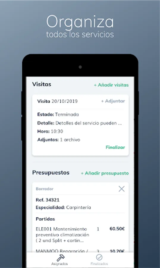 Make the visit at the agreed time and generate budgets from the app.