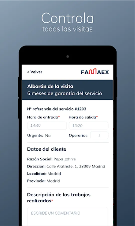 The Famaex app will be your main work tool in your Maintenance and Repair business. With the Famaex provider app you will have all the information about your maintenance and repair services in the palm of your hand.