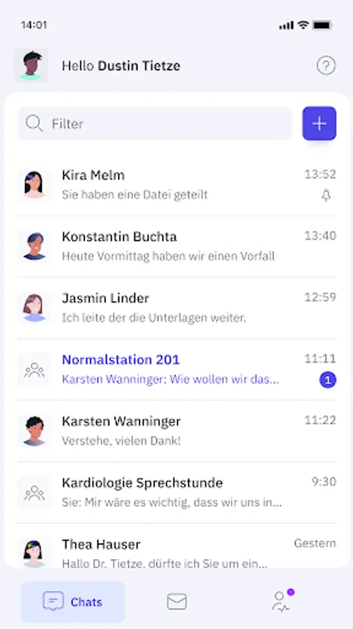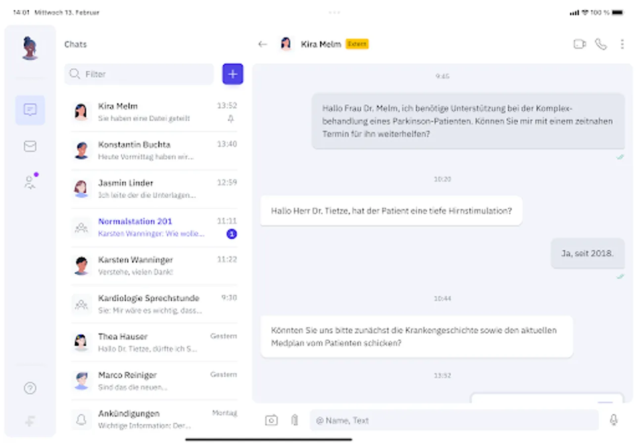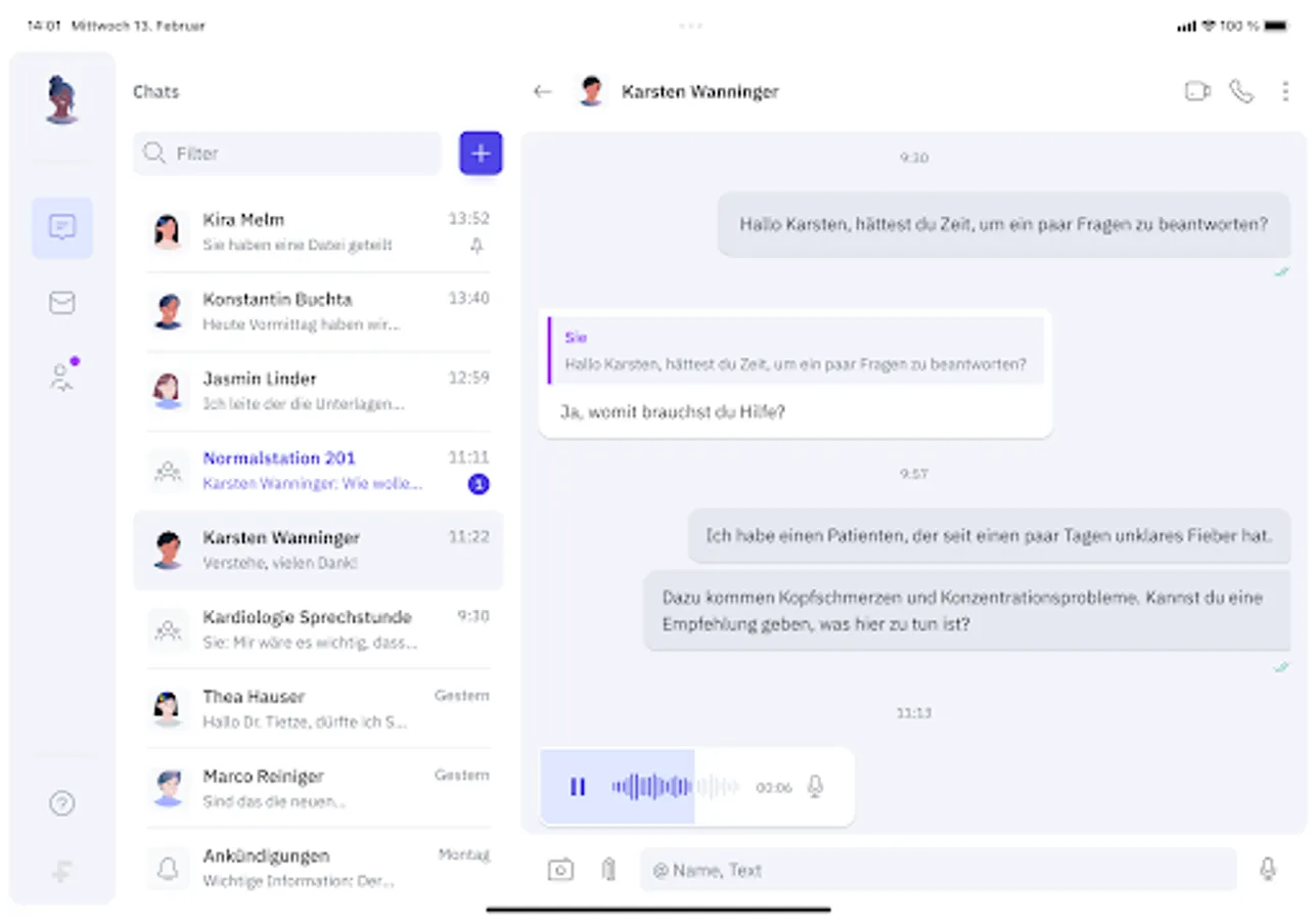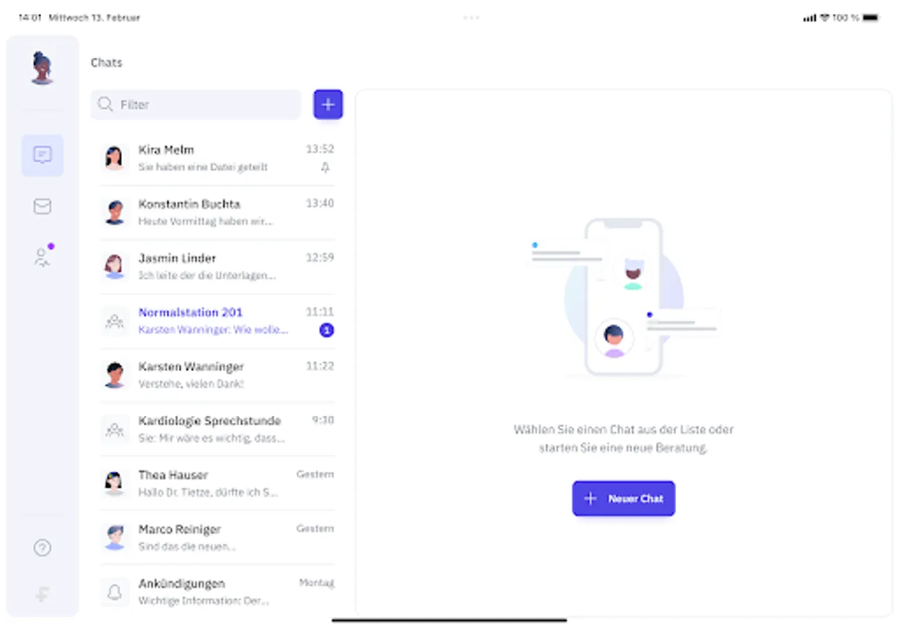 User client for internal communication and intersectoral exchange in the German healthcare sector.