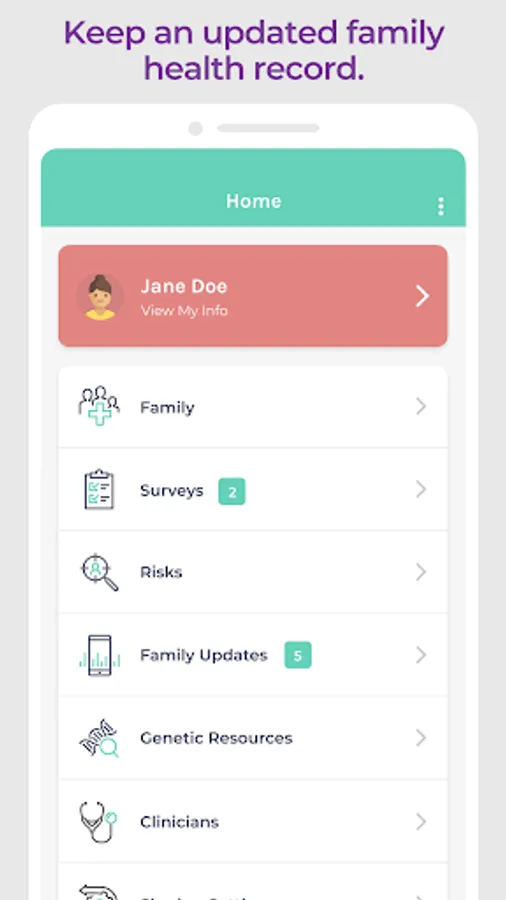 The app also allows you to connect with participating clinicians to share your family medical pedigree chart and other health data, saving you time at your appointment.