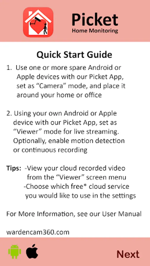 Picket will take any Android phone or tablet running Gingerbread version 2.3 or greater and put its Internet connectivity and advanced video and audio sensors to good use. Video surveillance has never been easier. Install Picket on two phones. One is your Camera at your designated location and take the other one with you as a Viewer. Log in with the same Google account, and that’s it! You are now connected to your loved ones via WiFi or 3G/4G from anywhere in the world. With Picket's unique motion detection feature and Google Drive and Dropbox integration, you can enjoy peace of mind without keeping a constant eye on things.