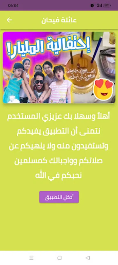 عدنا من جديد مع تطبيق جديد يحتوي على اخر و اجدد فيديوهات عائلة فيحان اليومية و المسلية كما ان تطبيقنا يشغل الفيديوهات بدون انترنت و بجودة عالية