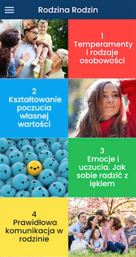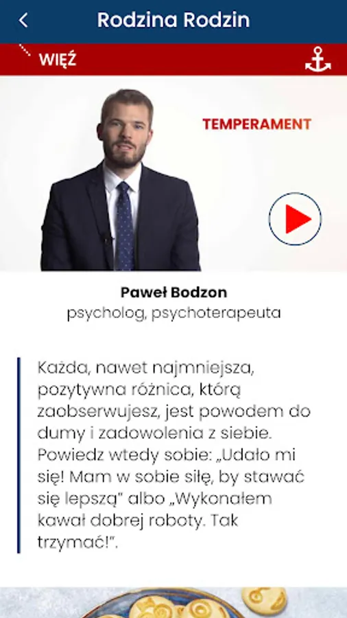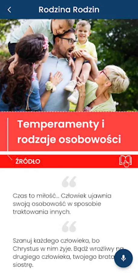 The application encourages you to work systematically. It consists of three main educational and informational sections: SOURCE, INSPIRATION, WIĘŹ. The user of the application in 21 steps of development will be able to use a number of instruments developing himself, his marital and family ties.