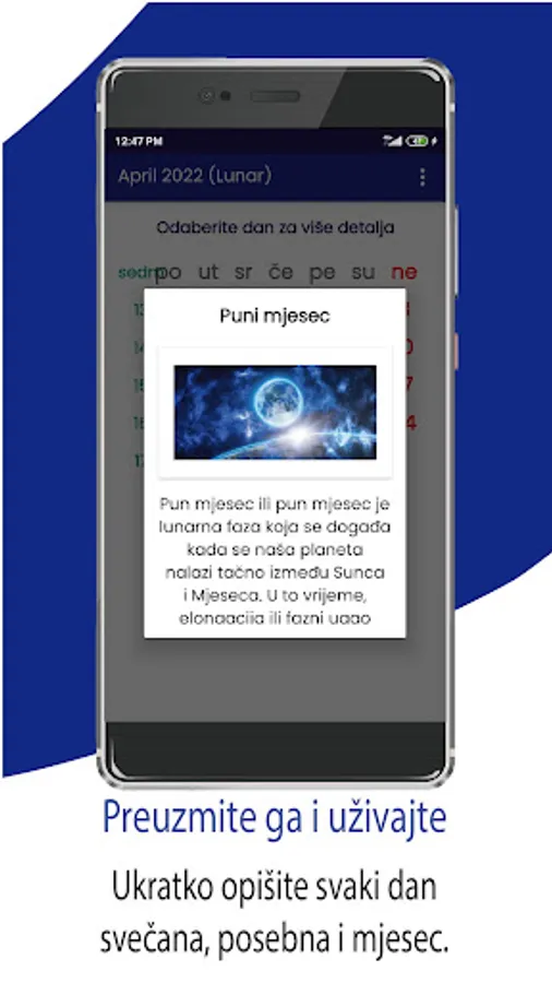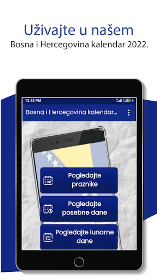 Naša kalendarska aplikacija za Bosnu i Hercegovinu 2023 za Android uređaje je sada dostupna na Play Store-u, uživajte u našoj aplikaciji. Koristite ga kao alat za praćenje i lociranje posebnih dana, praznika, posebnih datuma, radnih sedmica i lunarnih mjeseci svakog mjeseca. Uživajte u svim sadržajima.