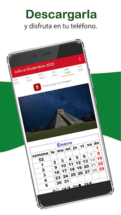 Our Mexico 2023 calendar application for Android devices is already available in the Play Store, enjoy our application. Use it as a tool to observe and locate special days, holidays, special dates, work weeks, and phases of the moon each month. Enjoy all the content.