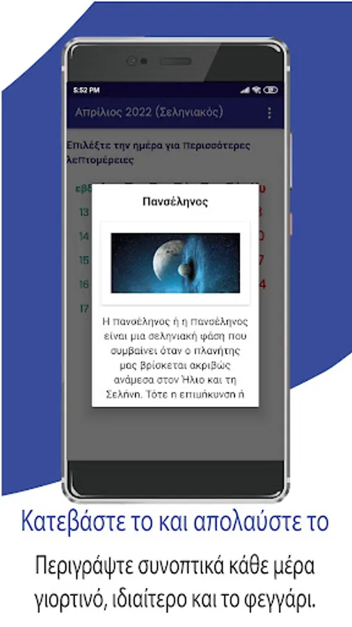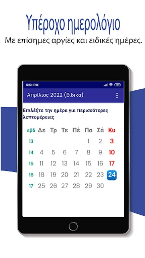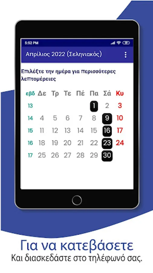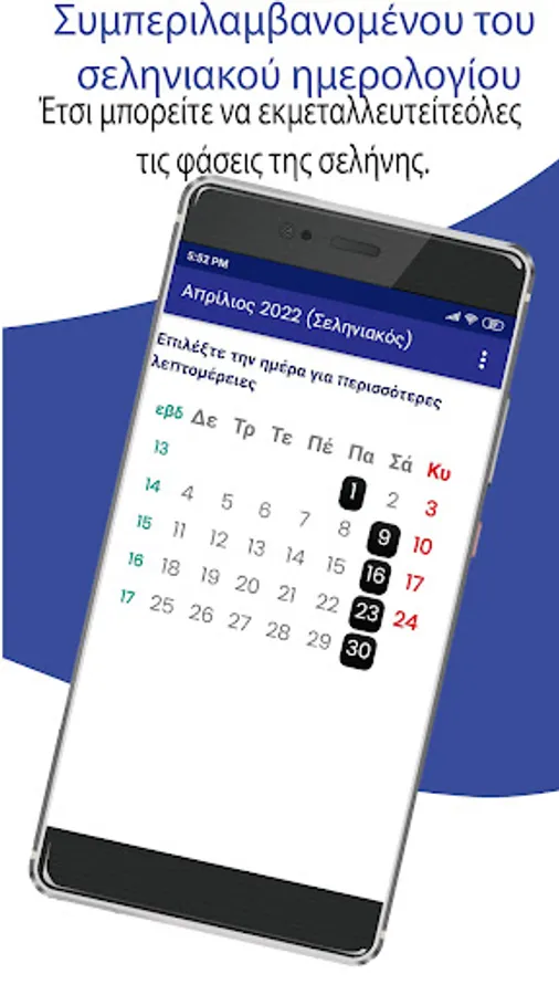 Greek calendar 2023 app for android devices is now available on play store, enjoy our app. Use it as a tool to observe and locate special days, holidays, special dates, work weeks and moon phases each month. Enjoy all the content.